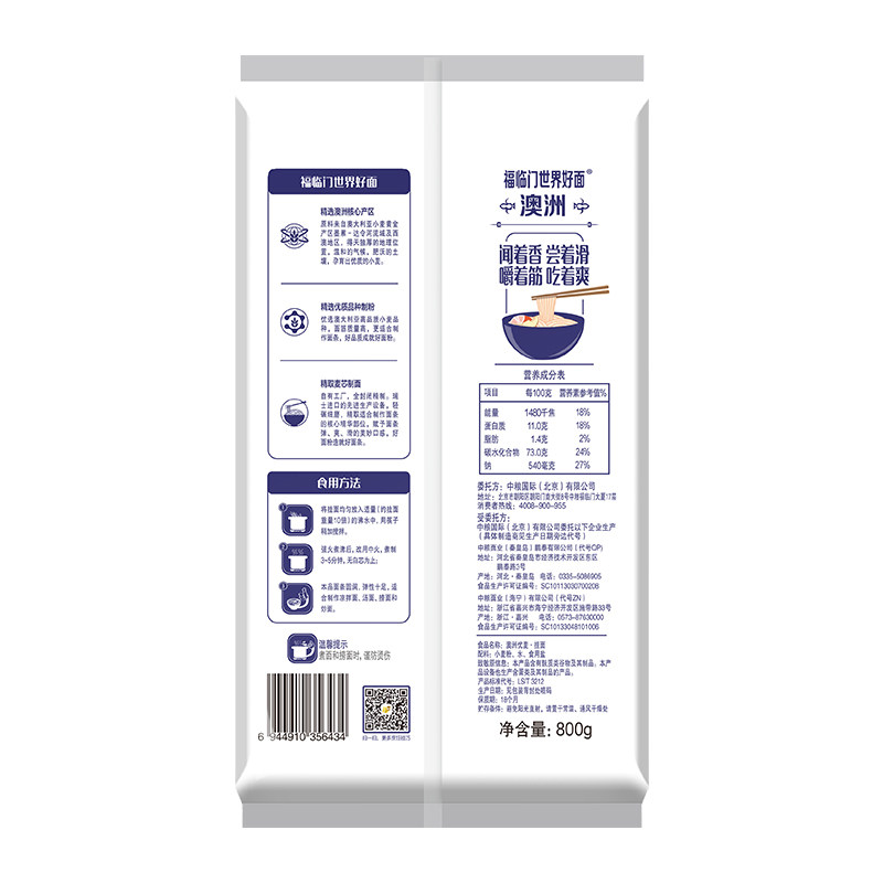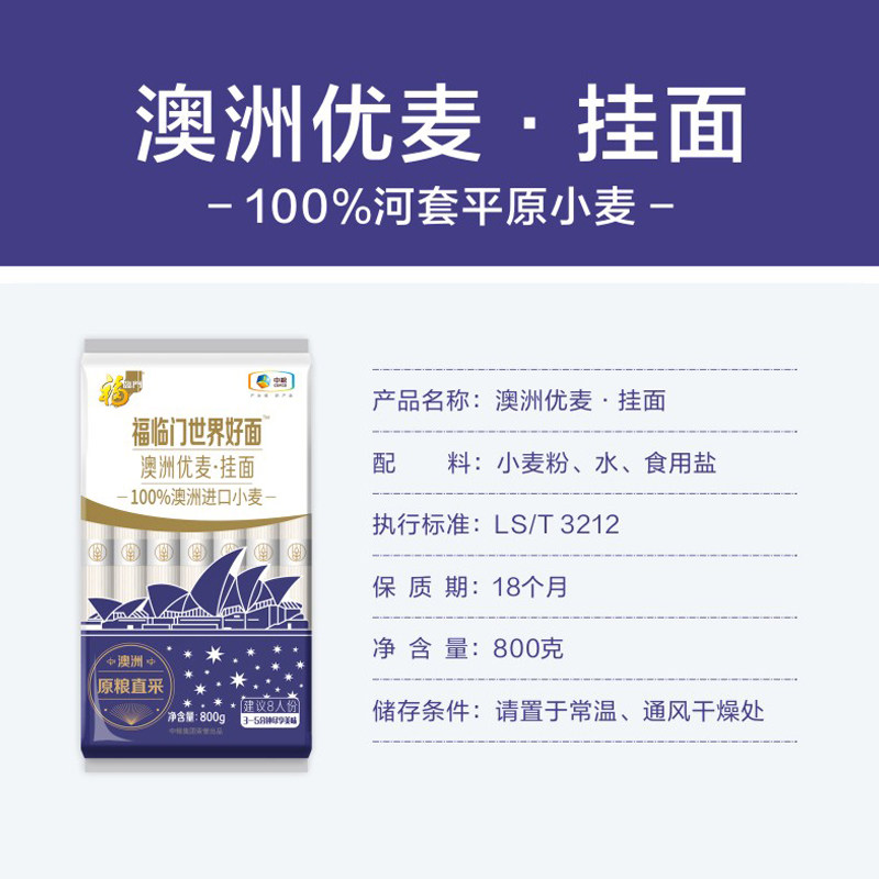 📚 福临门澳洲优麦挂面800g袋待煮面条中粮出品世界好面条中粮出品