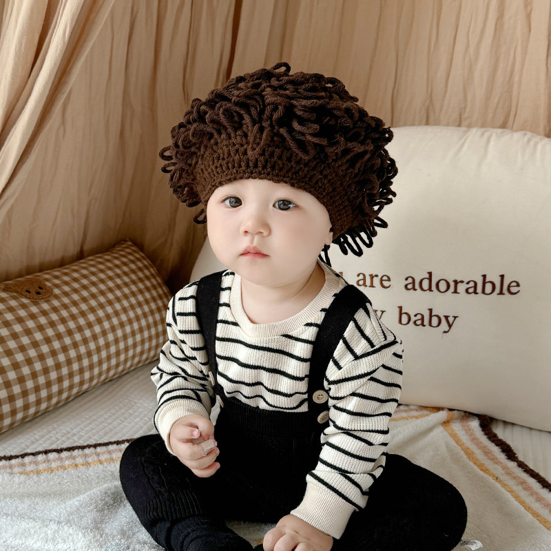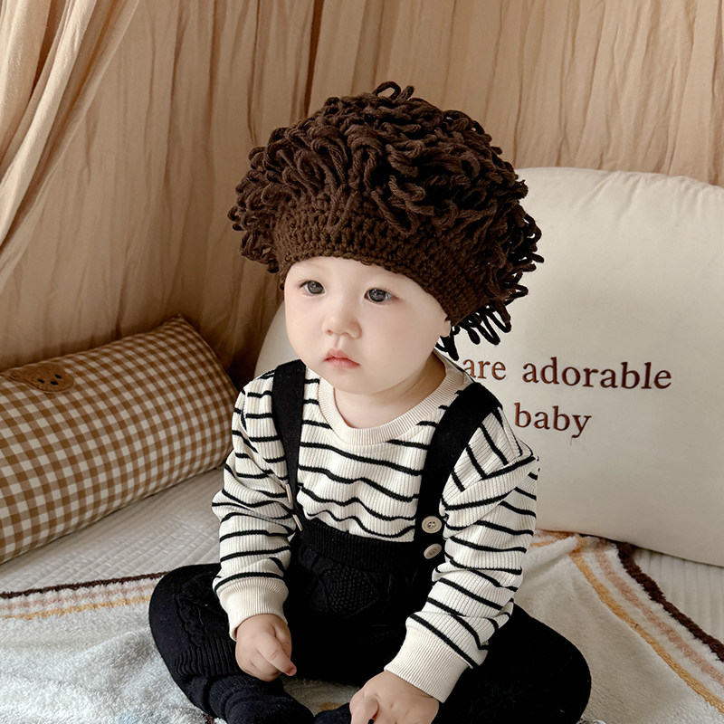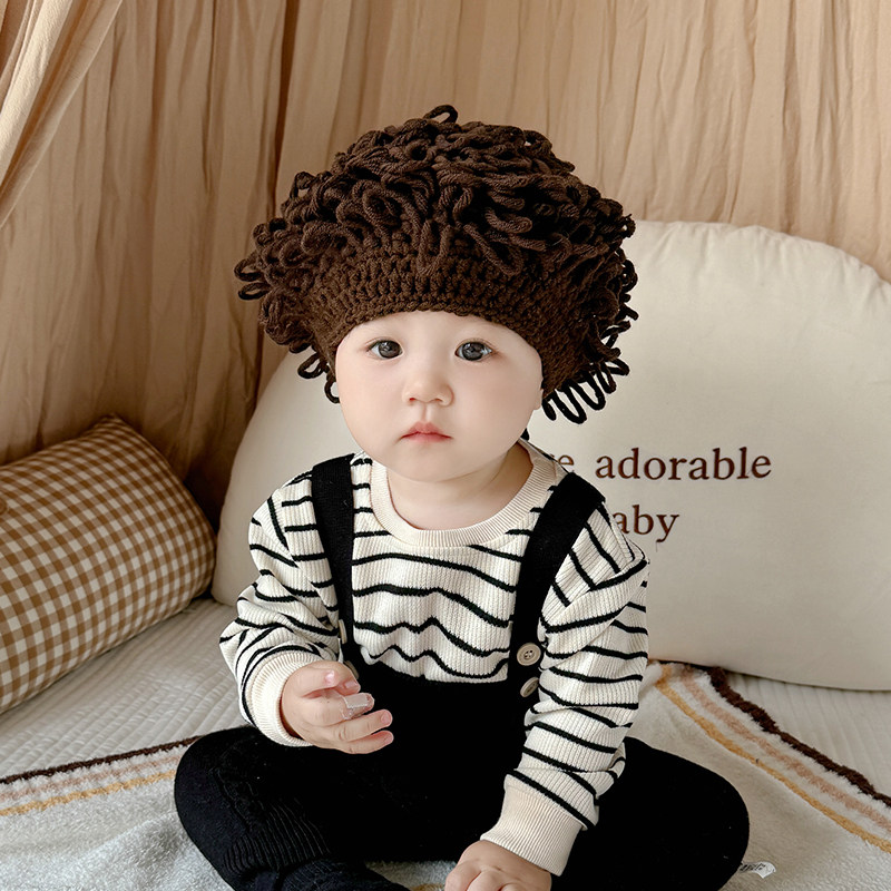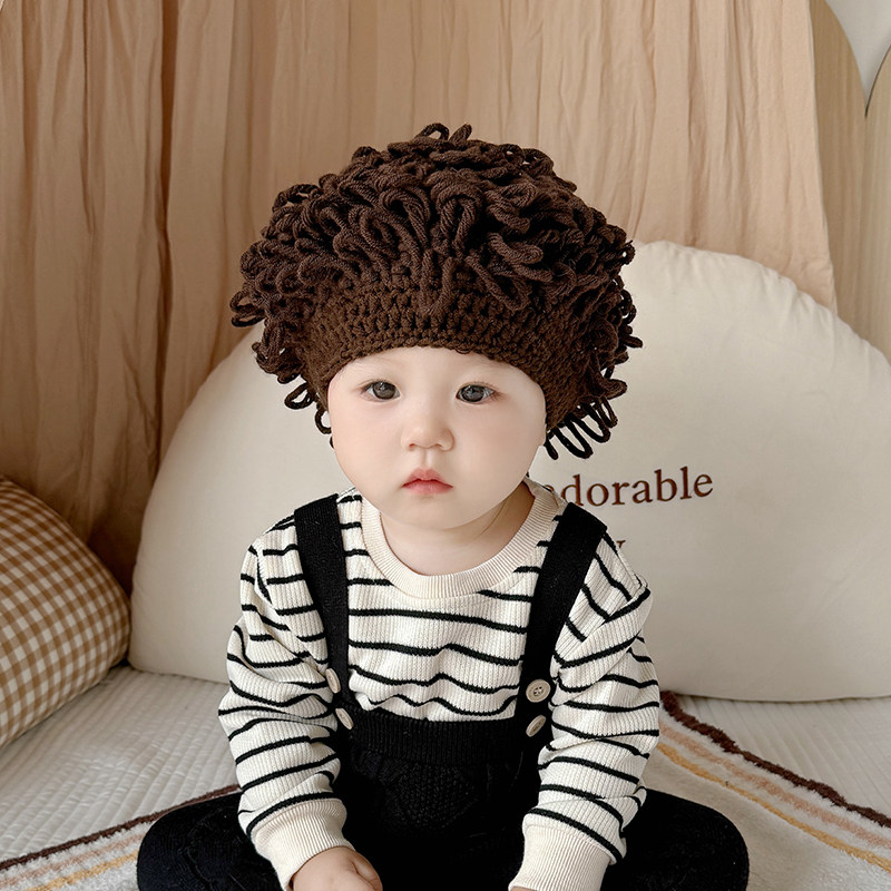 📚 婴儿搞笑帽子宝宝可爱假发帽子网红婴儿童个性头发套男女童卷发帽