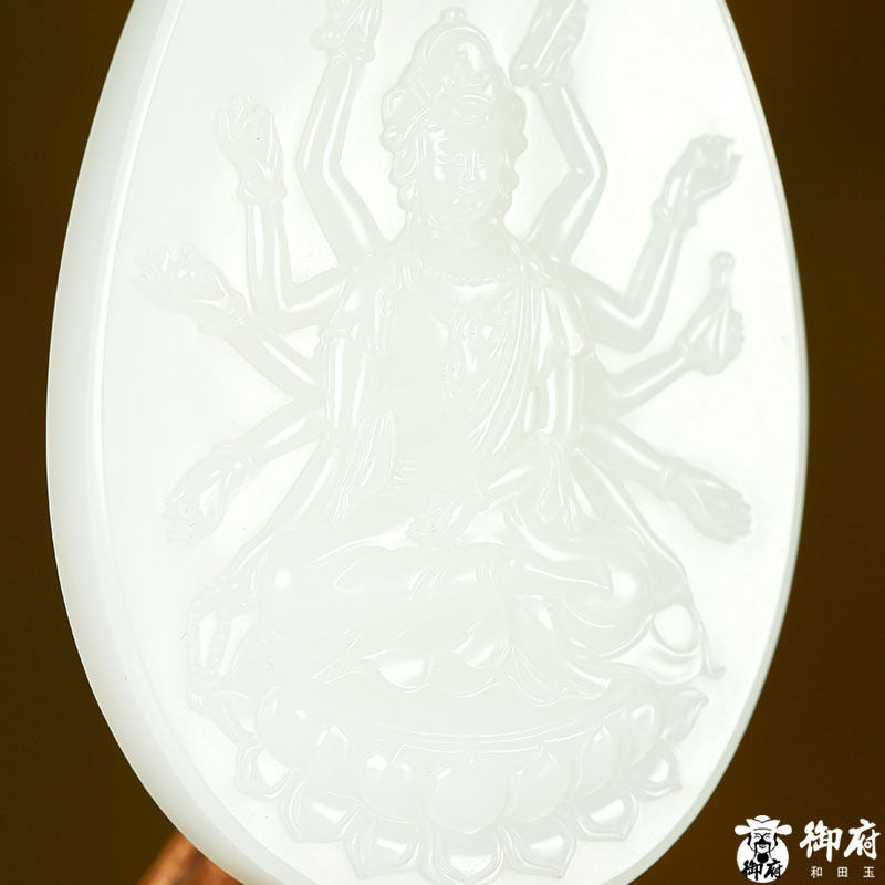 📚 新疆和田玉原毛孔皮羊脂白玉籽玉玉牌千手观音 74.7克