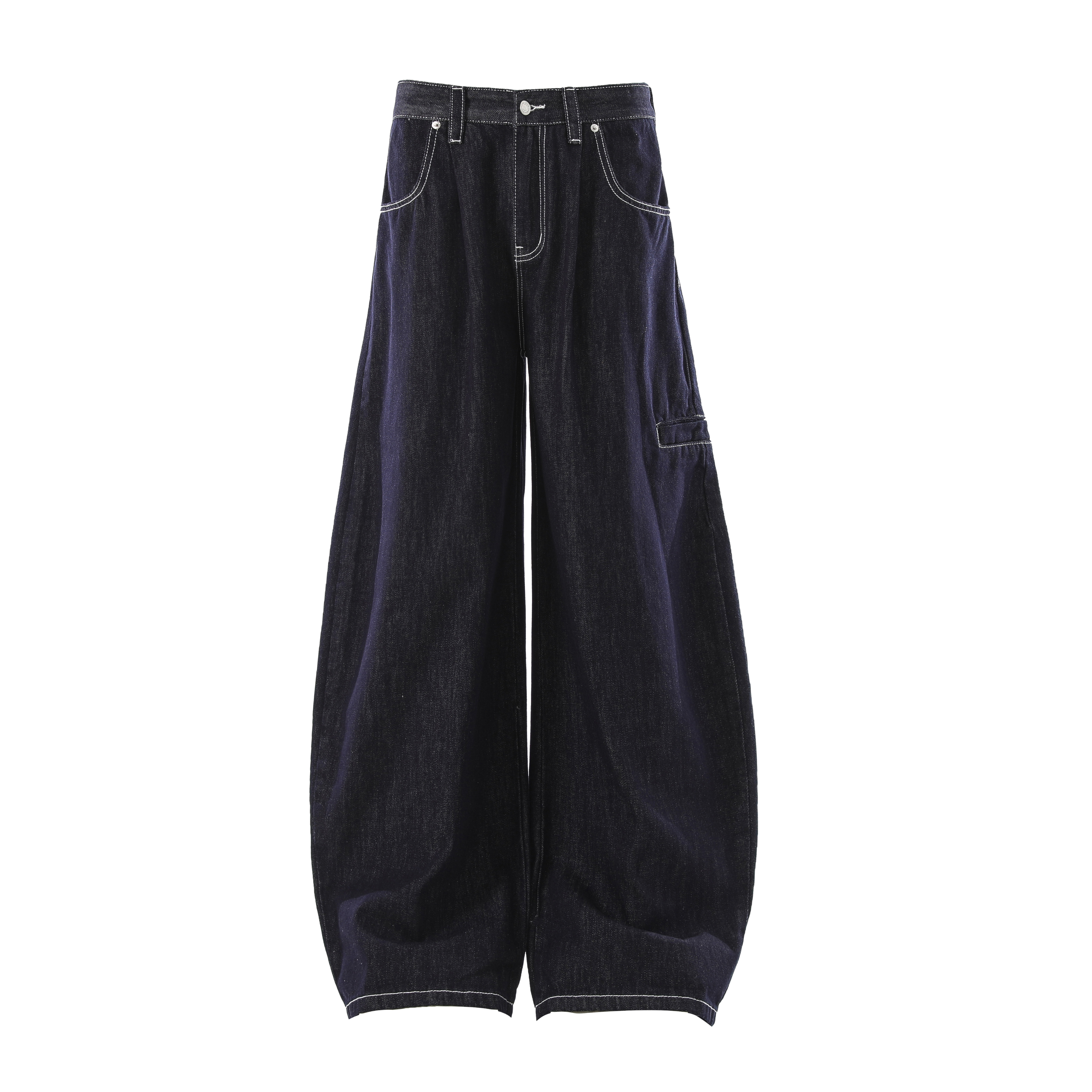 📚 男道美式复古明线原色弯刀牛仔裤男女潮牌设计感直筒阔腿长裤
