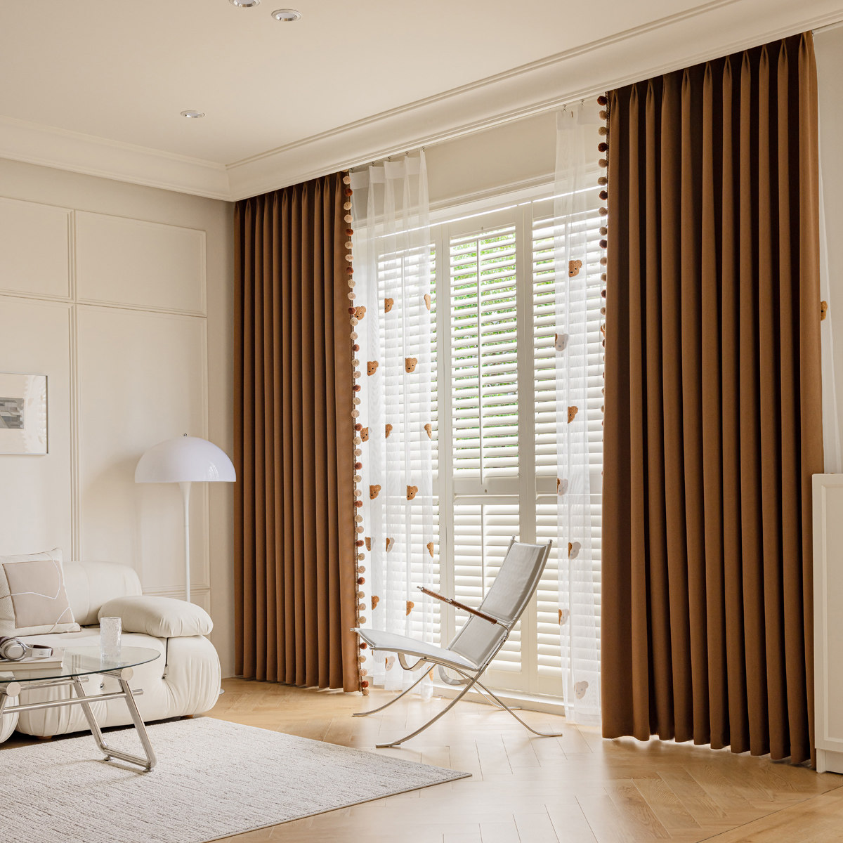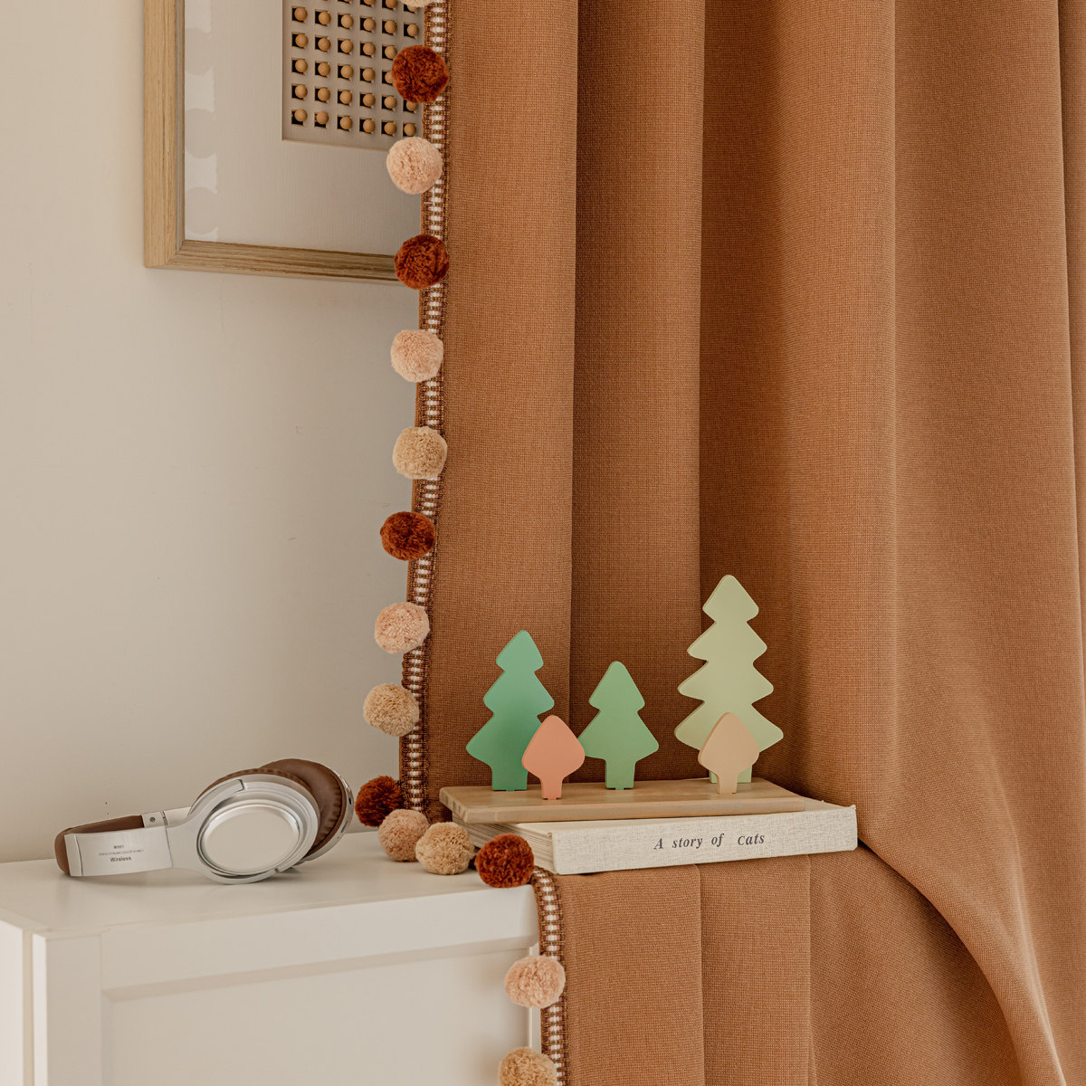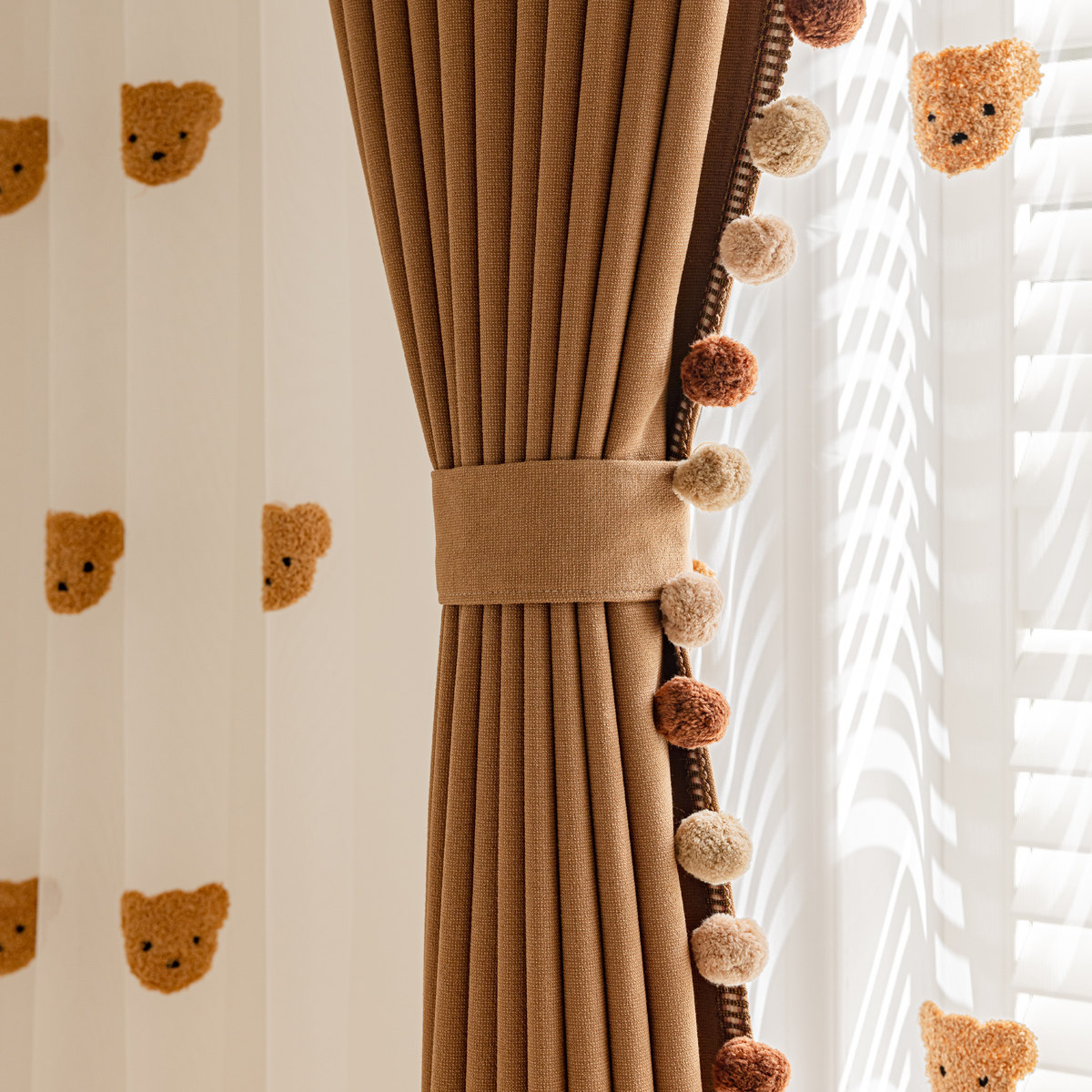 📚 2024秋冬新款美拉德色全遮光棉麻窗帘儿童房男孩女孩奶油风卡通房