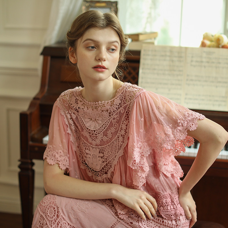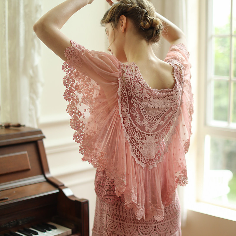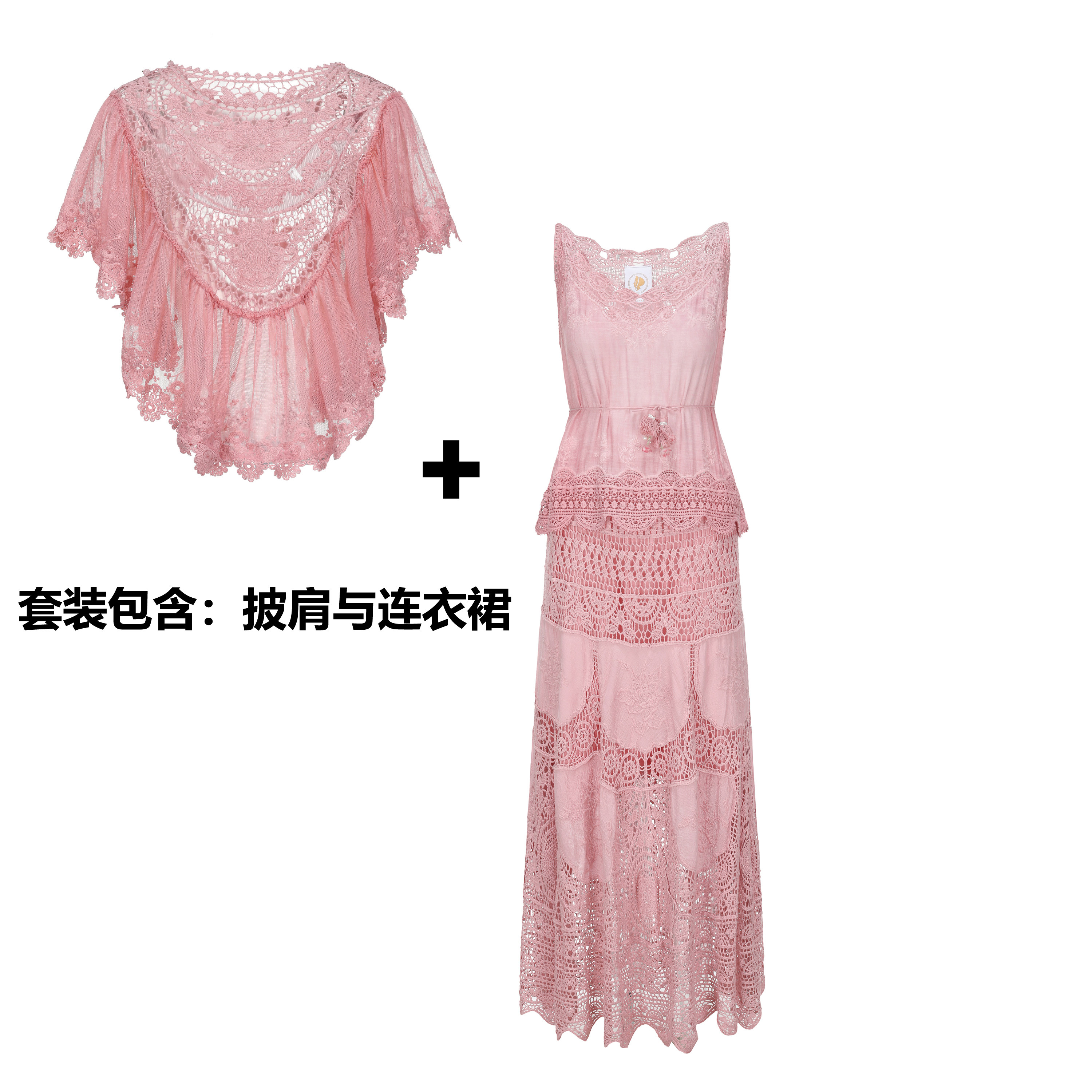 📚 脸儿艺 复古粉仙美 维多利亚蕾丝披肩 轻婚纱 背心长款落地长裙