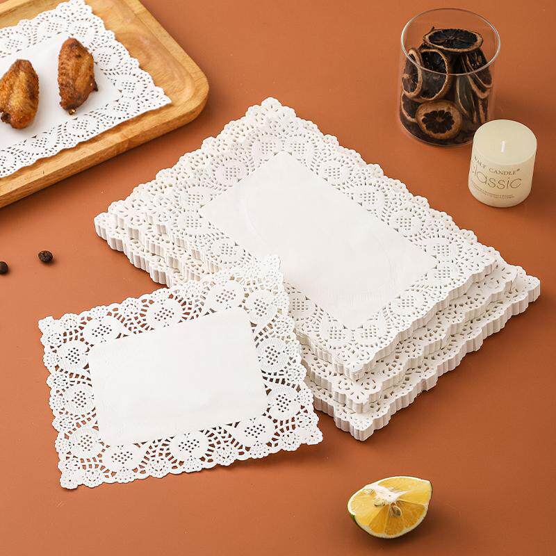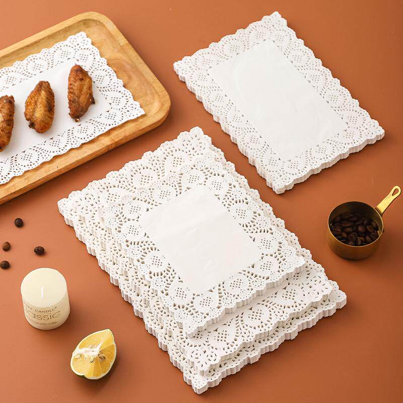 📚 花底纸垫纸油炸食品花边纸垫点心长方形厨房吸油纸蛋糕披萨垫纸