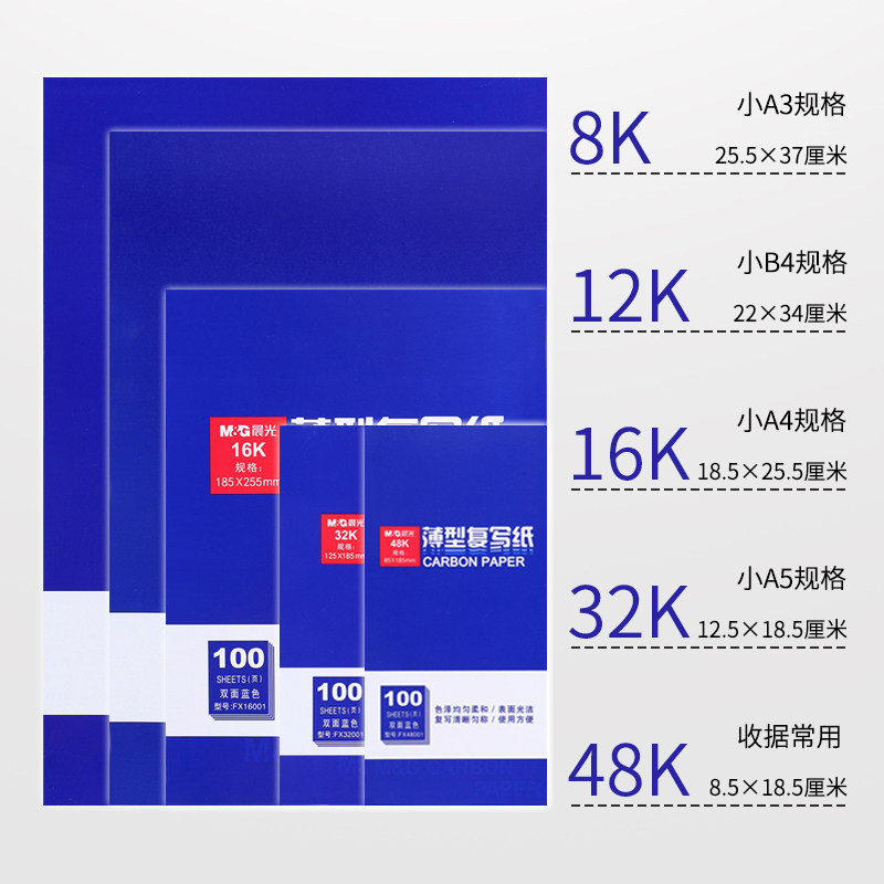 📚 晨光蓝色复写纸双面手写16k复印纸a4财务填写单据专用大张印纸红色32k开透蓝纸薄型复刻纸过底纸100张印蓝纸