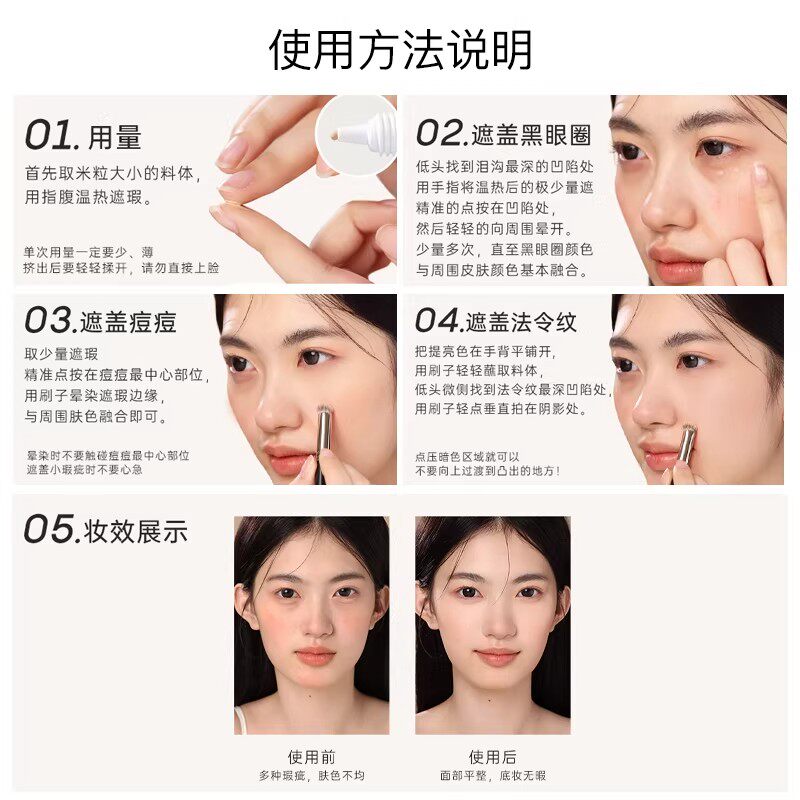 📚 Foreverkey纹丝不动遮瑕膏脸部精准遮瑕粉底液水润淡化痘印痘肌