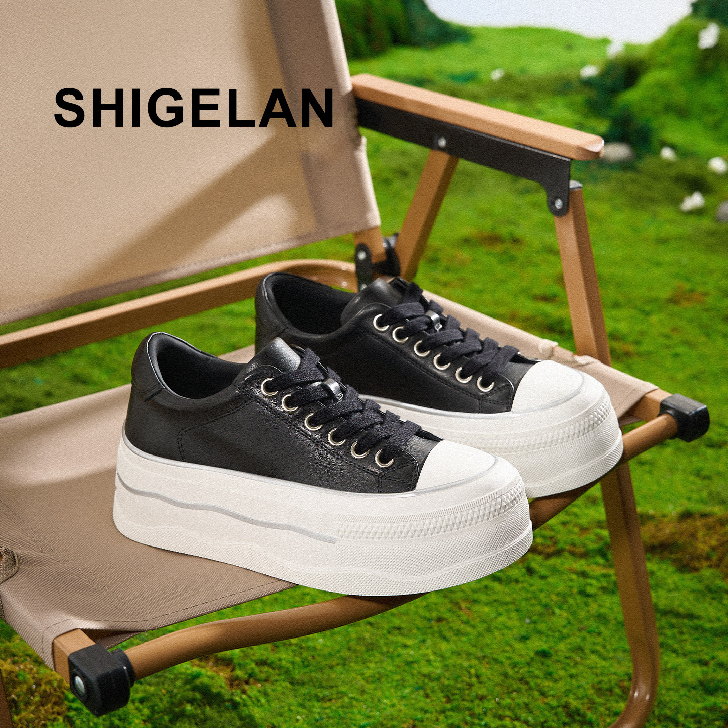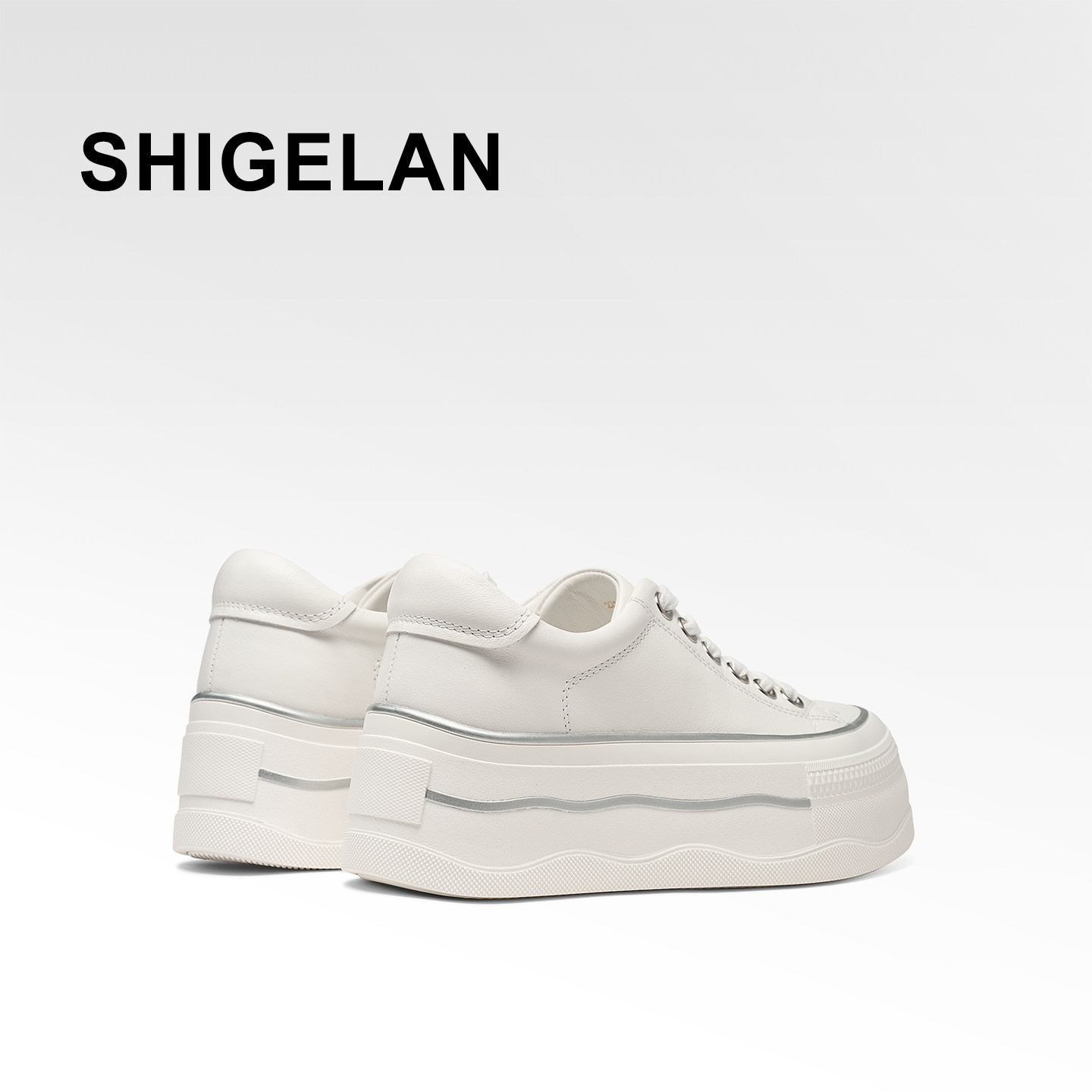 📚 诗歌兰2026新款真皮厚底小白鞋女系带增高休闲板鞋潮流百搭松糕鞋