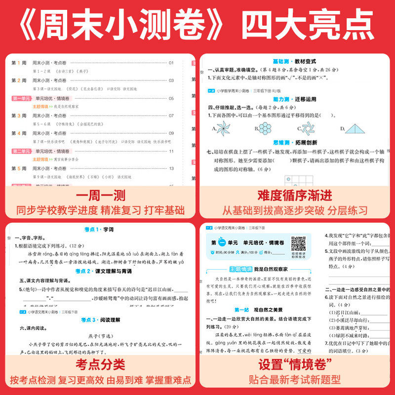📚 2026一本周末小测卷小学一二三四五六年级上下册语文数学英语人教版北师苏教一周一测同步试卷周周测单元培优卷期中期末综合测试卷