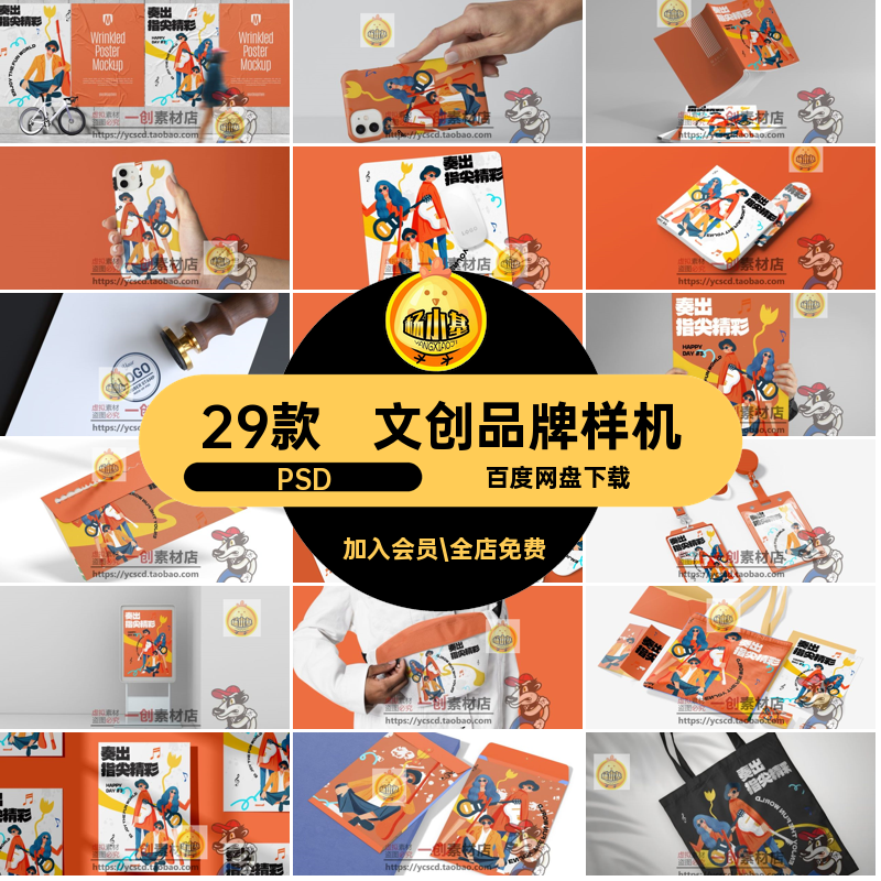 📚 音乐节品牌样机PS帆布包29款素材智能贴图创VI文PSD手机壳海报