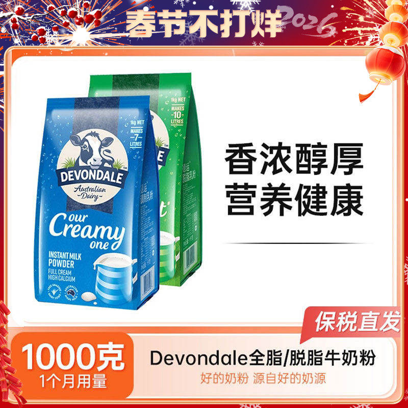 📚 Devondale德运脱脂全脂奶粉纯牛奶粉早餐奶成人中老年儿童学生1kg