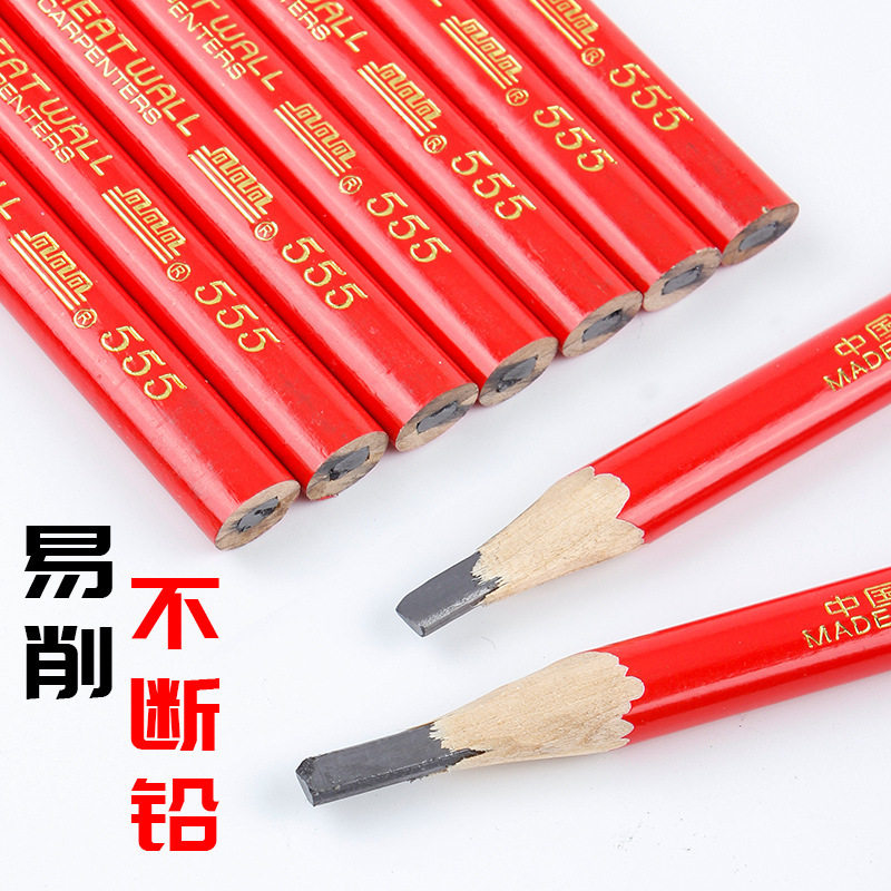 📚 长城牌木工专用划线铅笔高硬度加粗不易断芯工地工程专业画线工具黑芯笔放线宽扁椭圆形木头笔素描粗芯记号笔