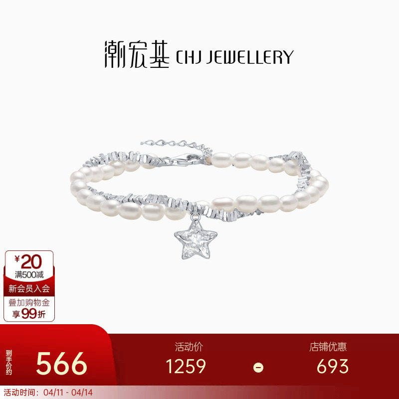 📚 潮宏基闪耀银河s925银珍珠手链陨石星星碎碎银饰手饰妇女节女