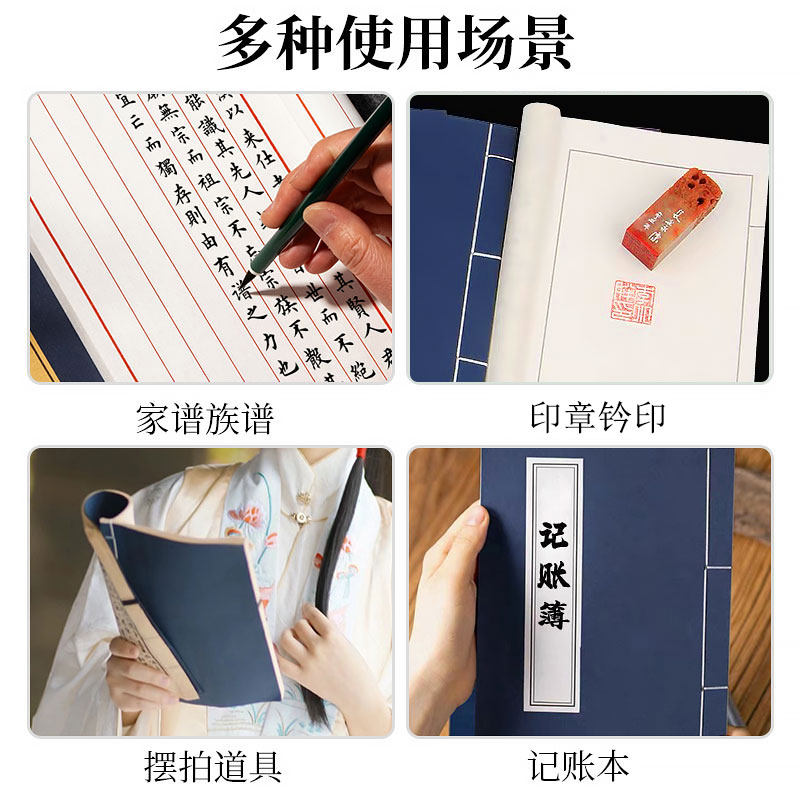 📚 加厚空白印谱宣纸线装本印章篆刻盖印本小楷竖格书法练习竖格家谱