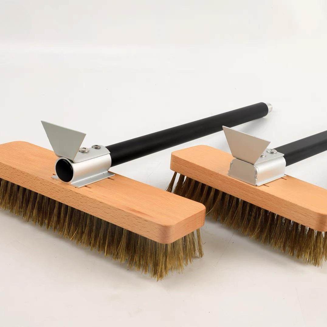📚 披萨炉刷铜丝刷铝合金加长手柄披萨工具木柄钢丝刷长柄披萨工具