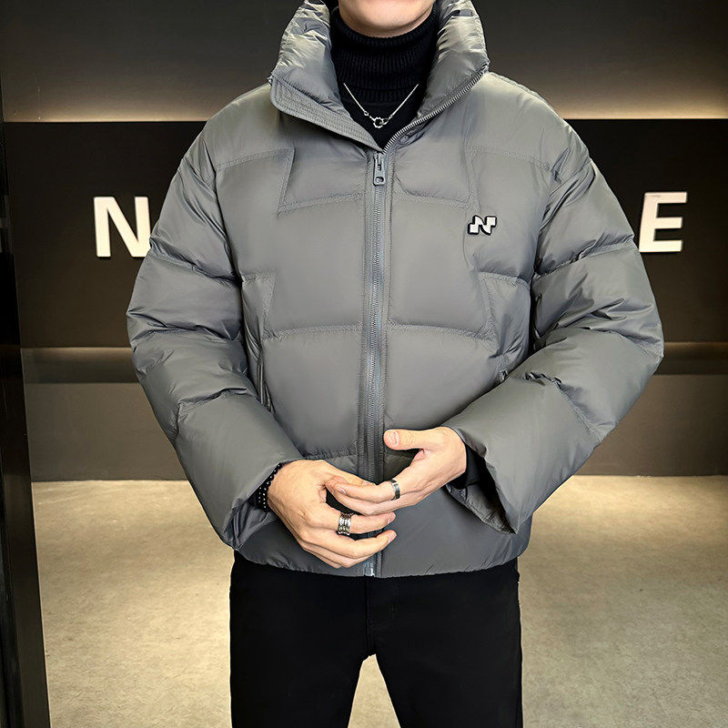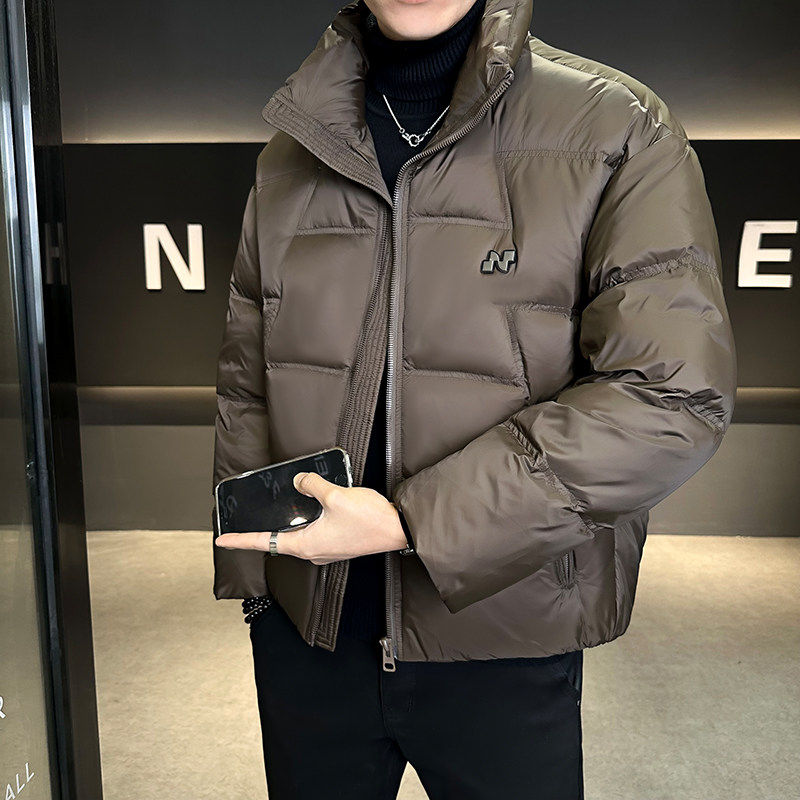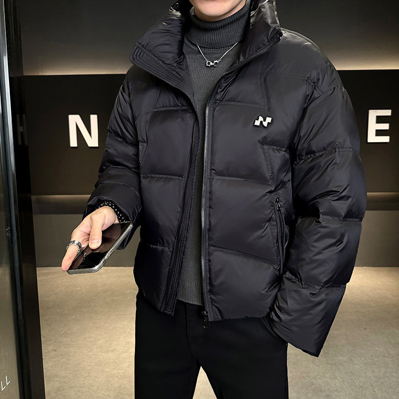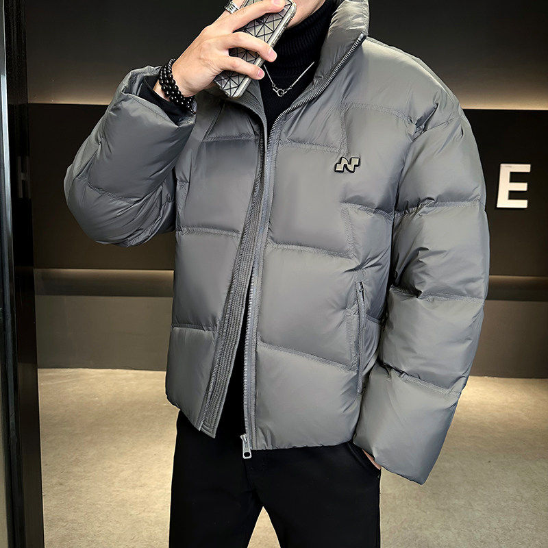 📚 冬季宽松个性设计感立领短款羽绒服男美式帅气保暖白鸭绒外套潮牌