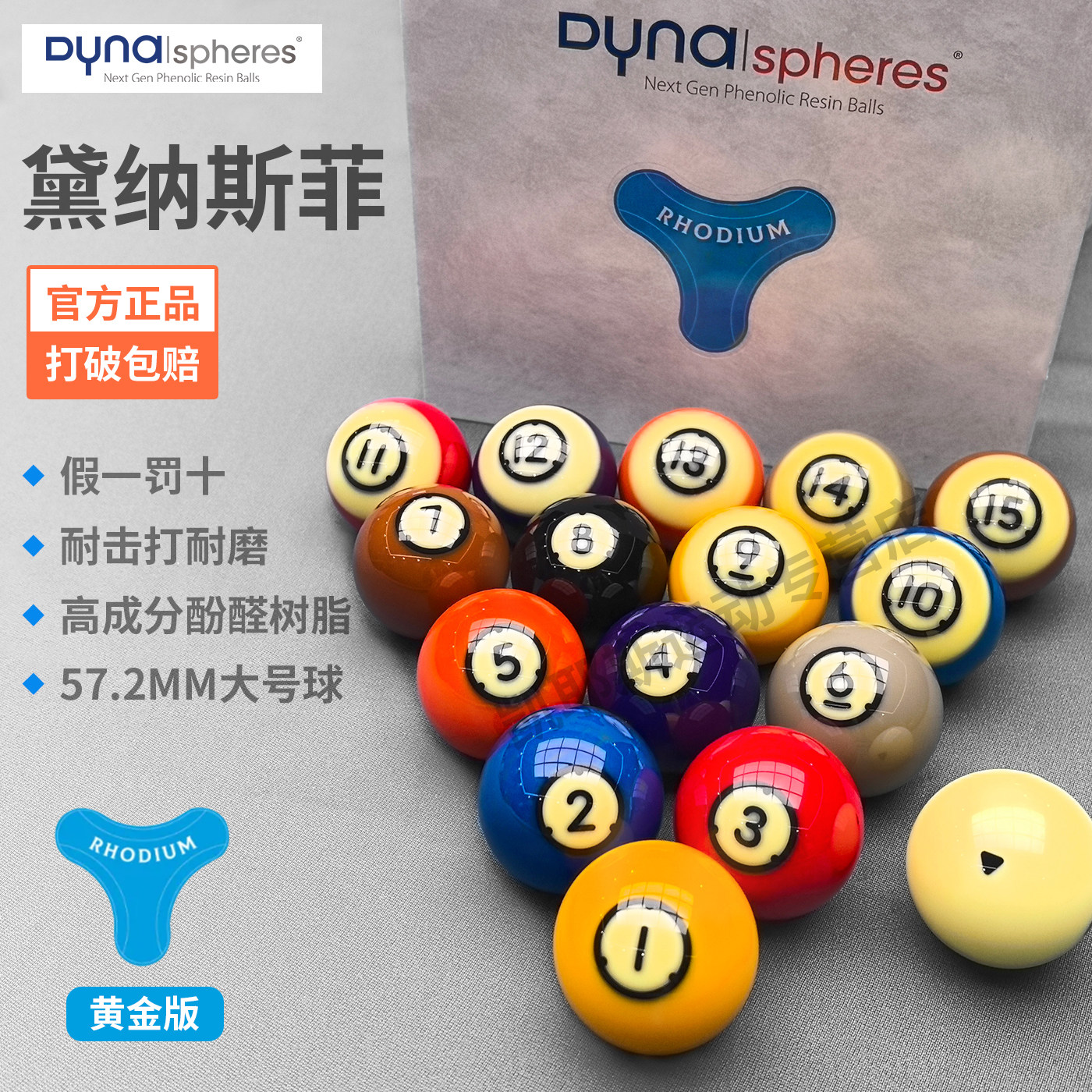 📚 中八台球球子黛纳斯菲台球黄金A级台球球珠水晶球进口标准57.2MM
