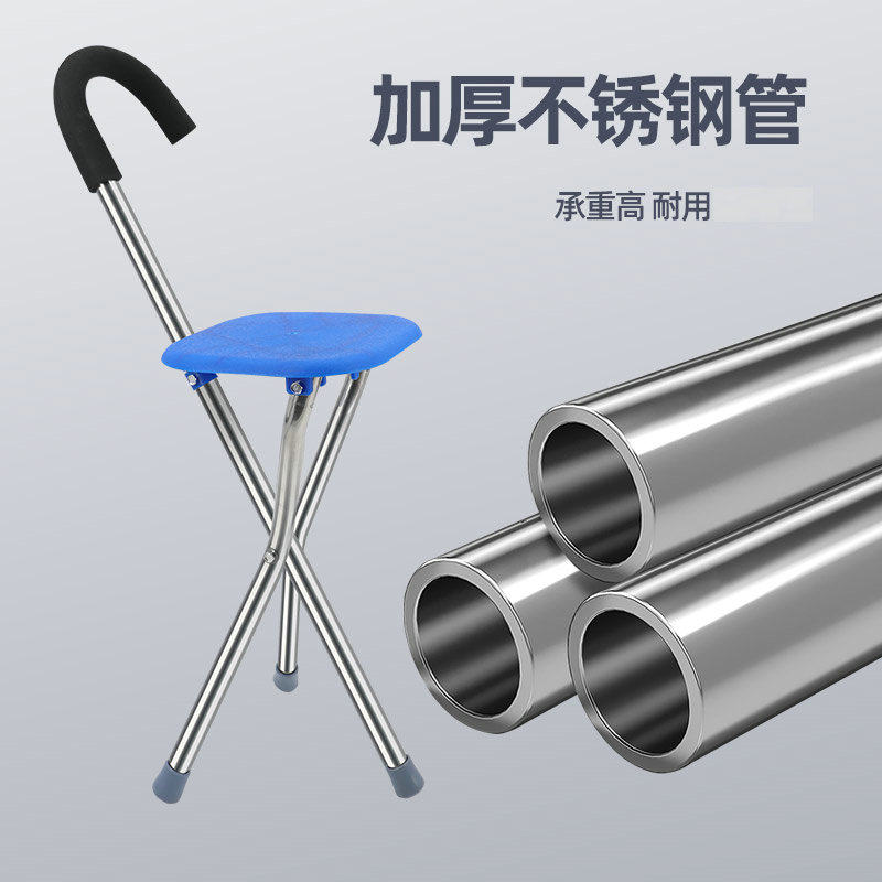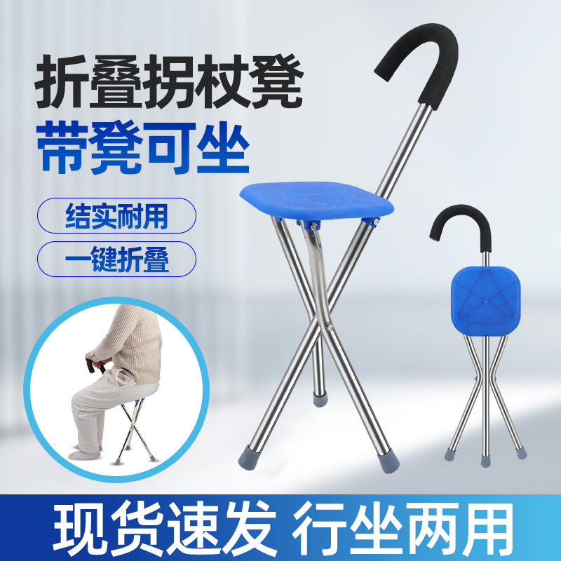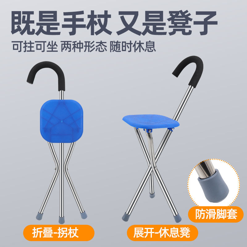 📚 不锈钢老年人拐杖凳子手杖凳外出用拐棍凳子承重高耐用登山拐手杖