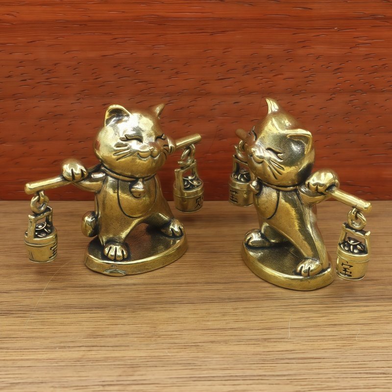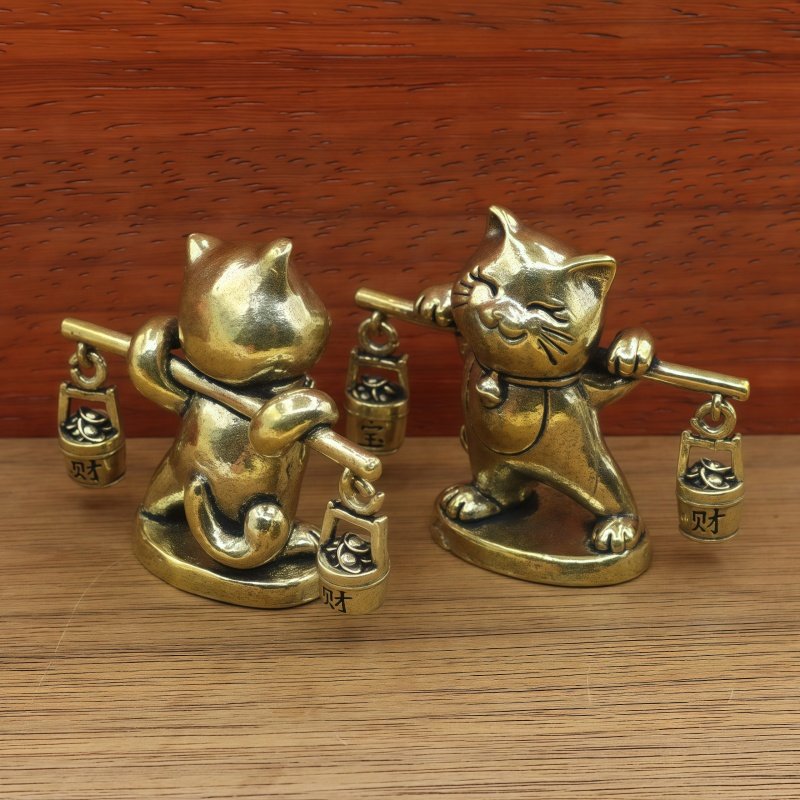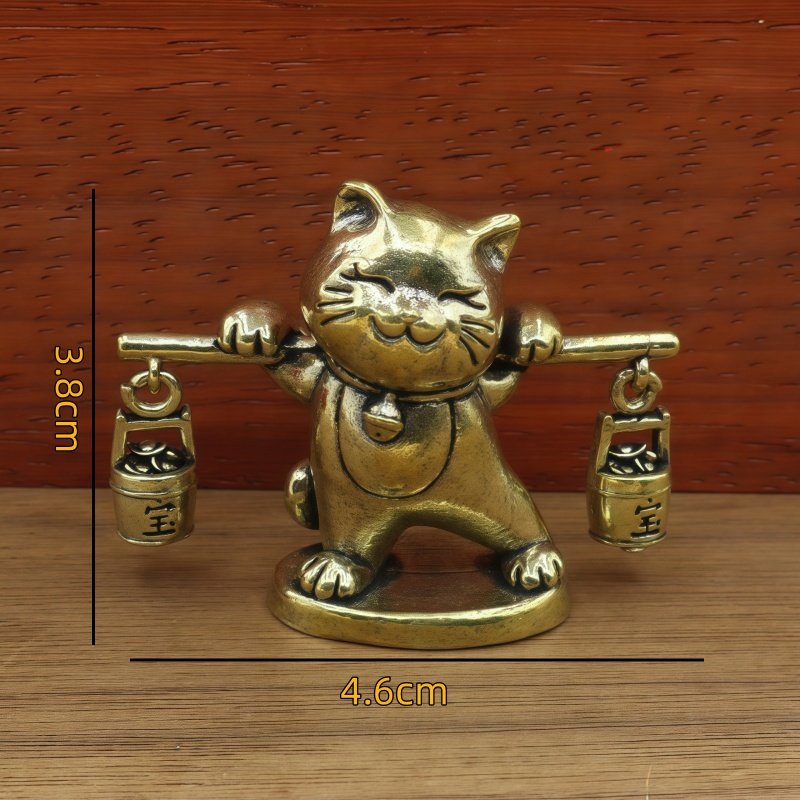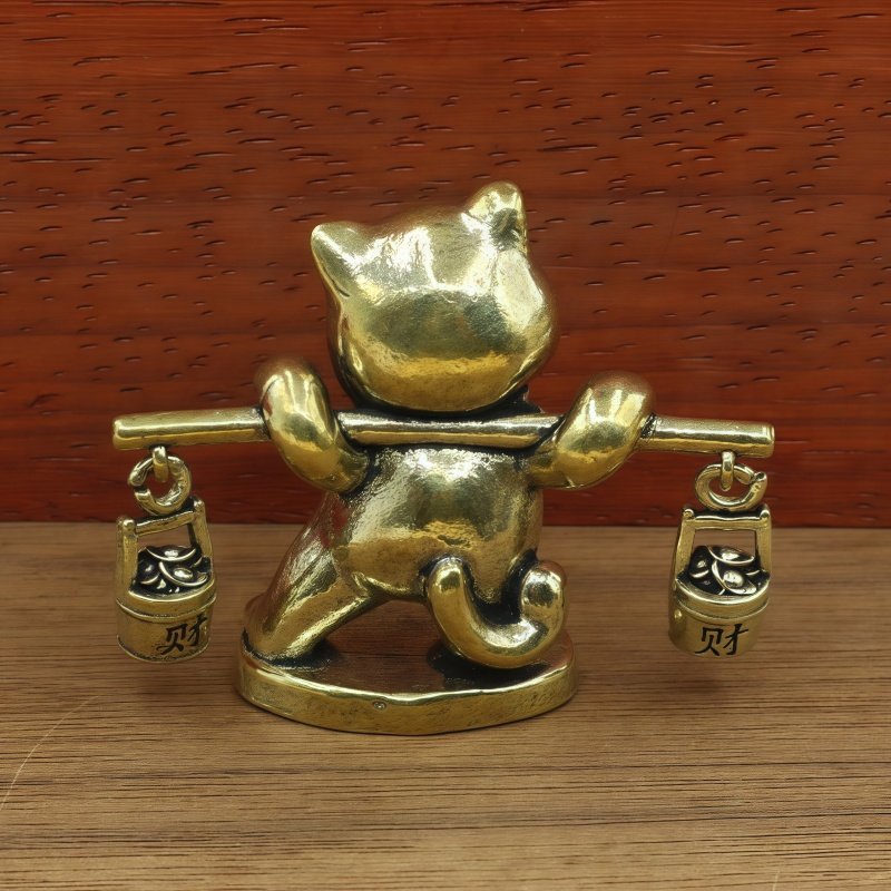 📚 黄铜招财猫挑担一桶金财宝卡通乔迁开业礼物办公室桌面茶宠装饰品