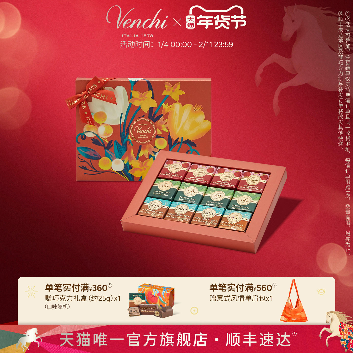📚 Venchi树莓黑巧克力方片礼盒闻绮进口高端零食节日送礼物