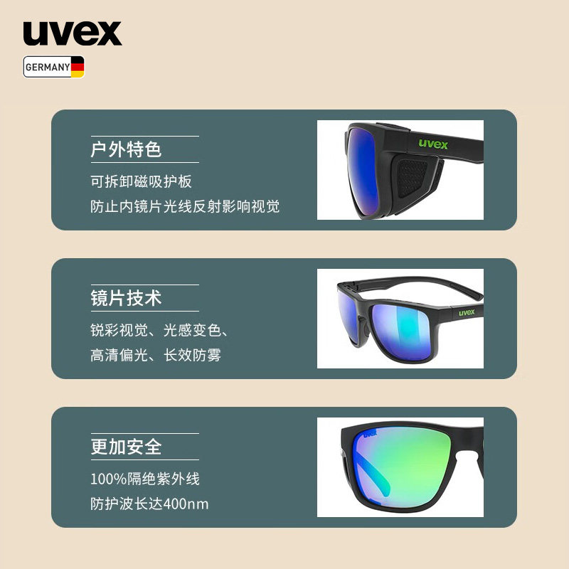 📚 uvex sportstyle312/VPX 德国优维斯登雪山偏光变色户外运动眼镜