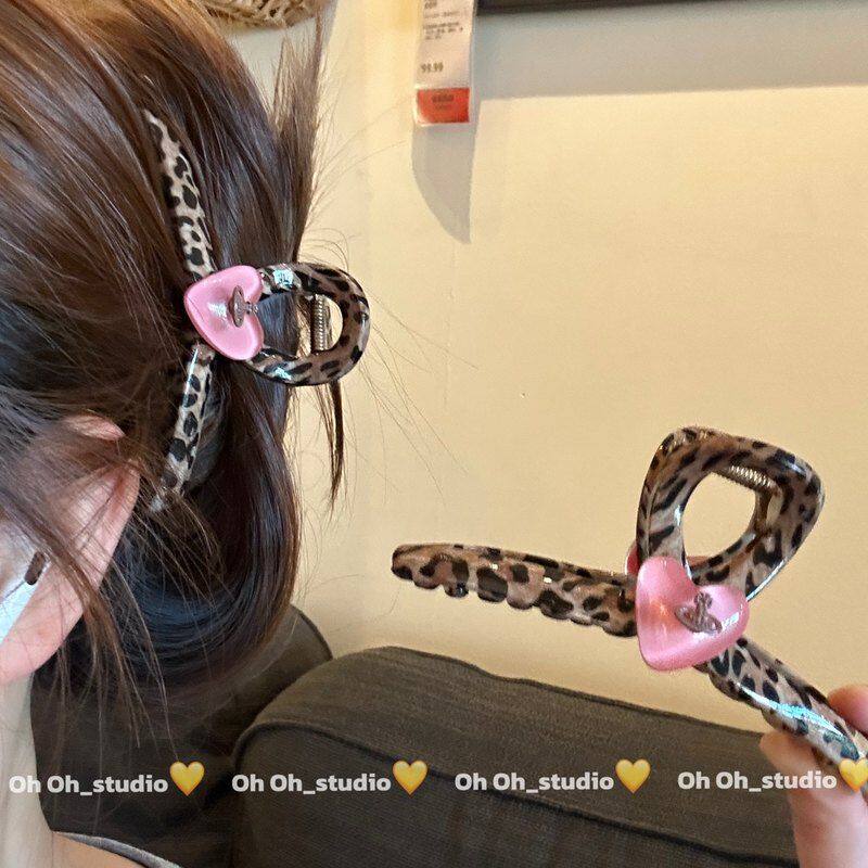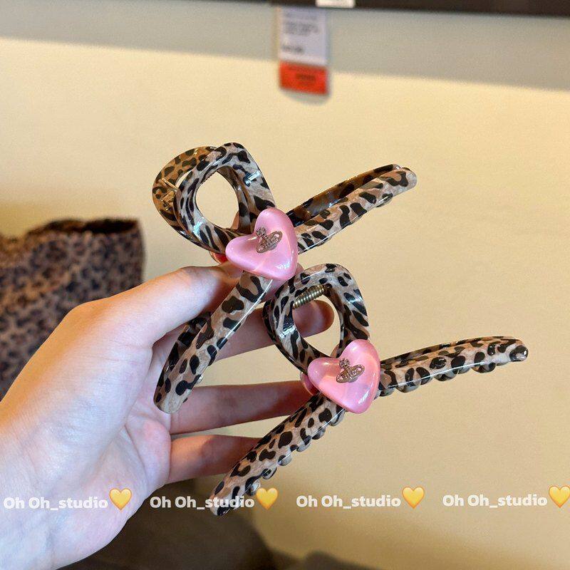 📚 【实拍】时髦俏皮洋气豹纹发抓粉色果冻爱心土星鲨鱼夹发夹ins