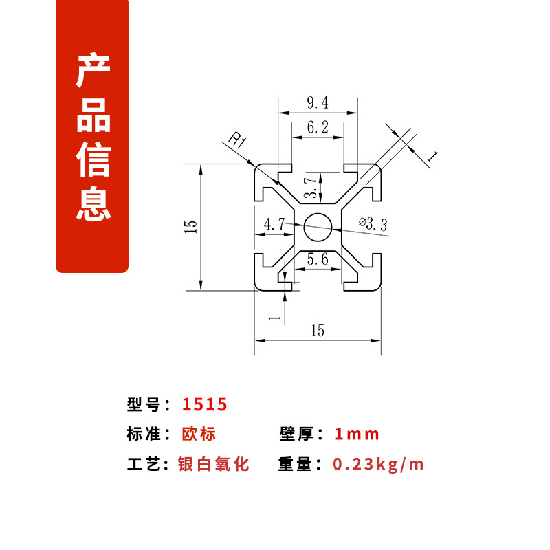 📚 工业铝型材欧标1515铝合金型材3D打印机配件15*15铝方管轻型框架