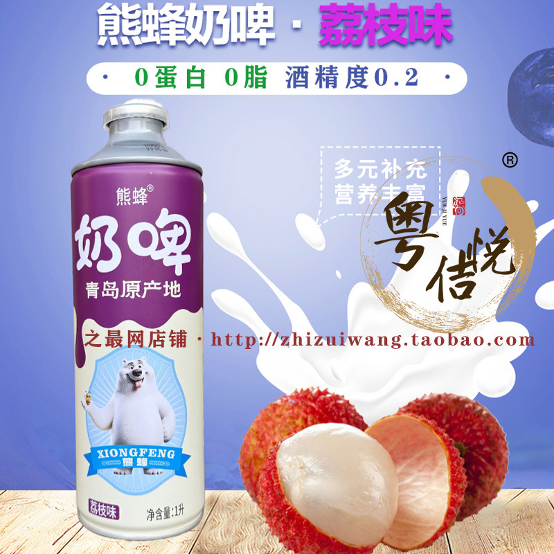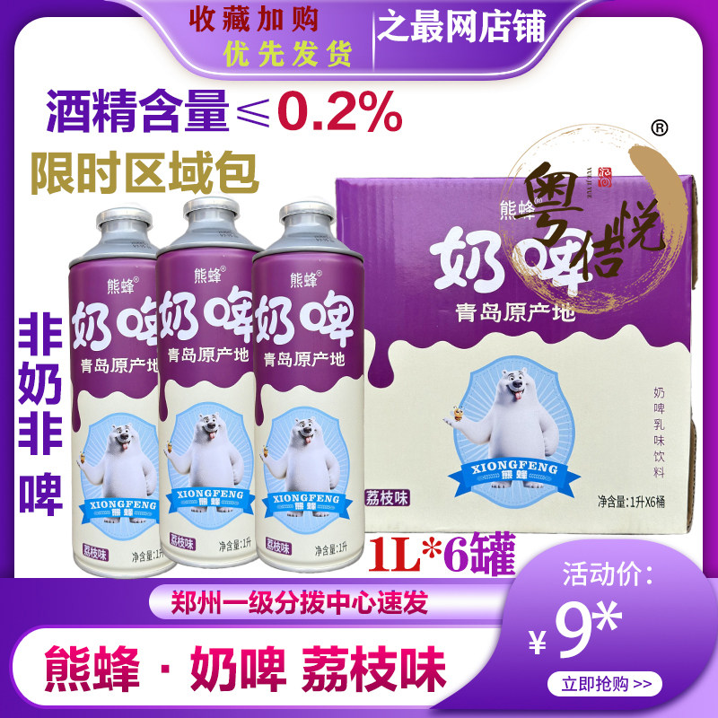 📚 熊蜂奶啤啤酒荔枝味1L*6罐配制女士低度原味果味蜜桃青岛产0.2度