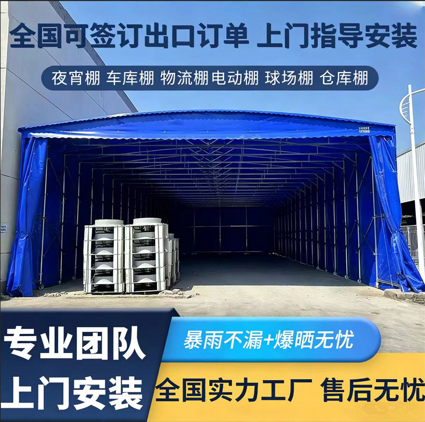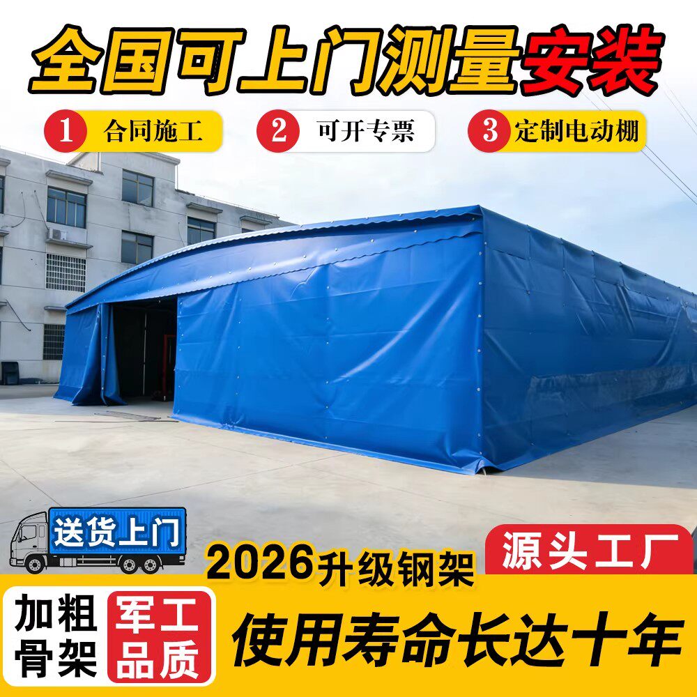 📚 收缩仓库推拉篷户外移动遮阳棚电动防雨蓬伸缩式雨棚大型排档帐篷