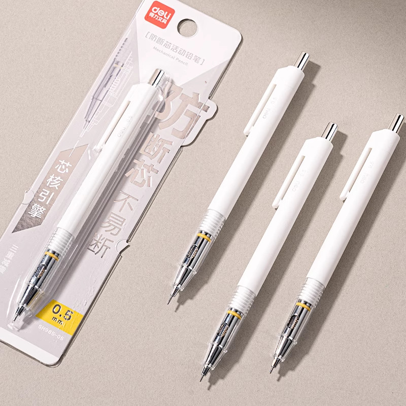 📚 得力自动铅笔小学生专用初中生0.5低重心重手感三重减震防断不断芯高颜值金属活动铅笔手绘素描美术绘画专用