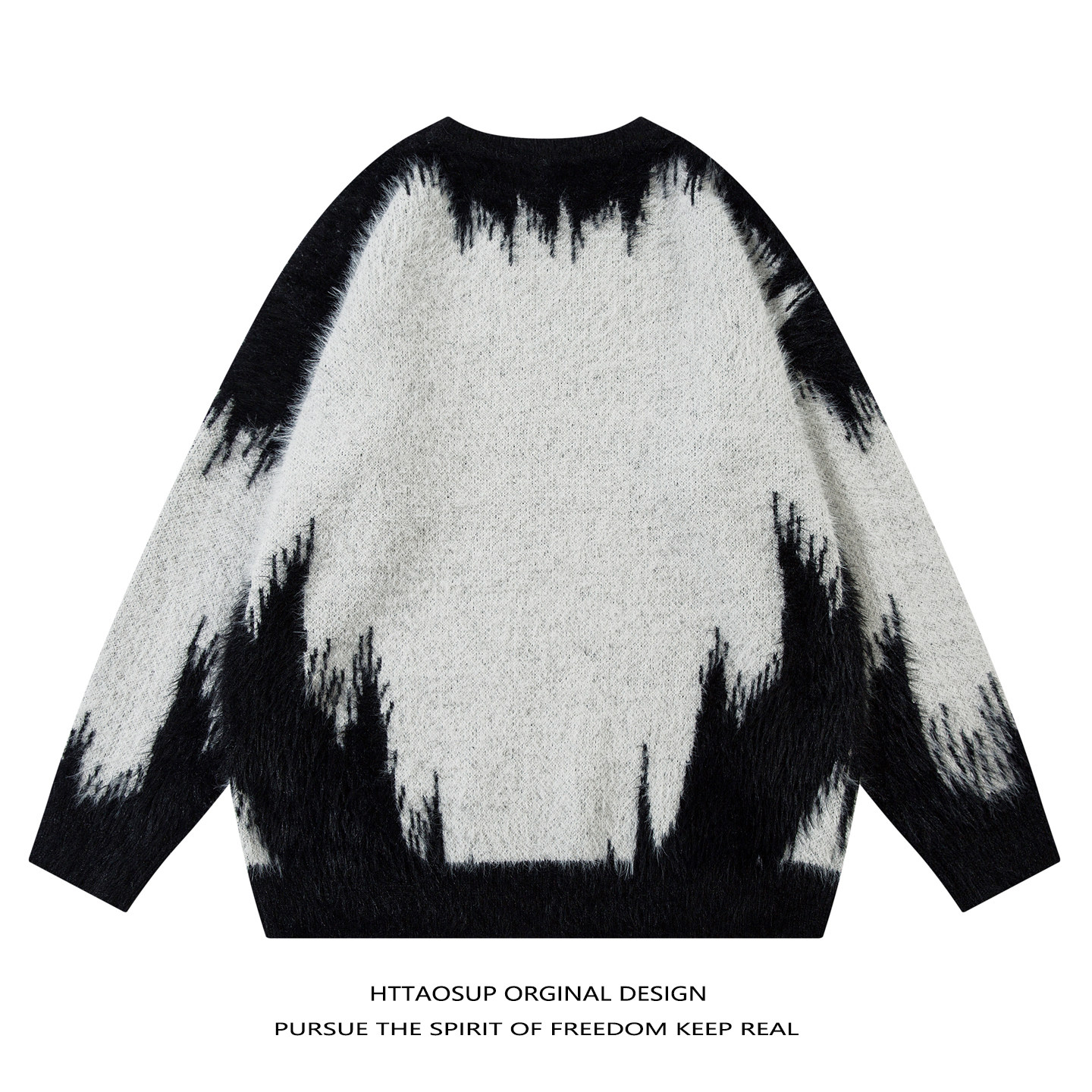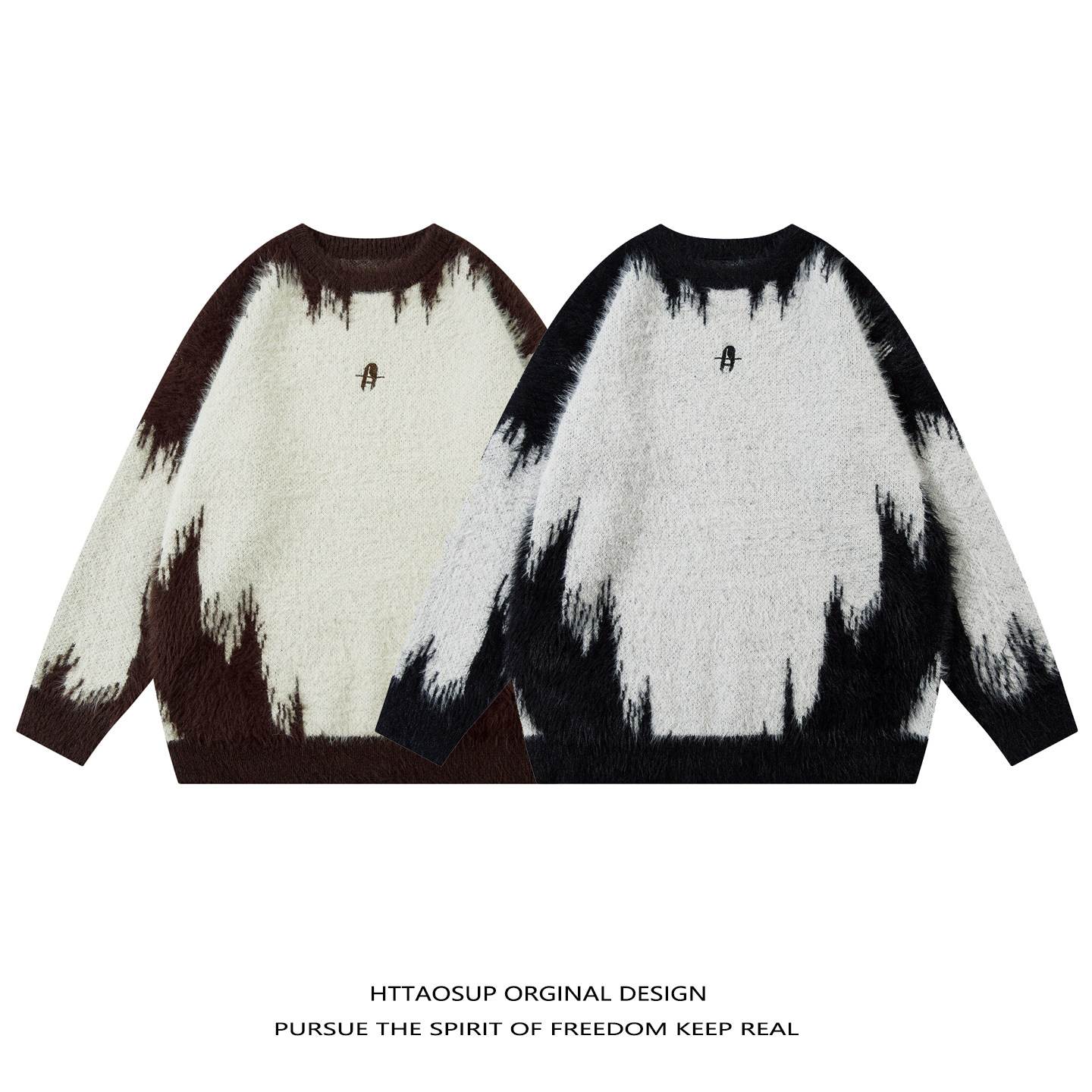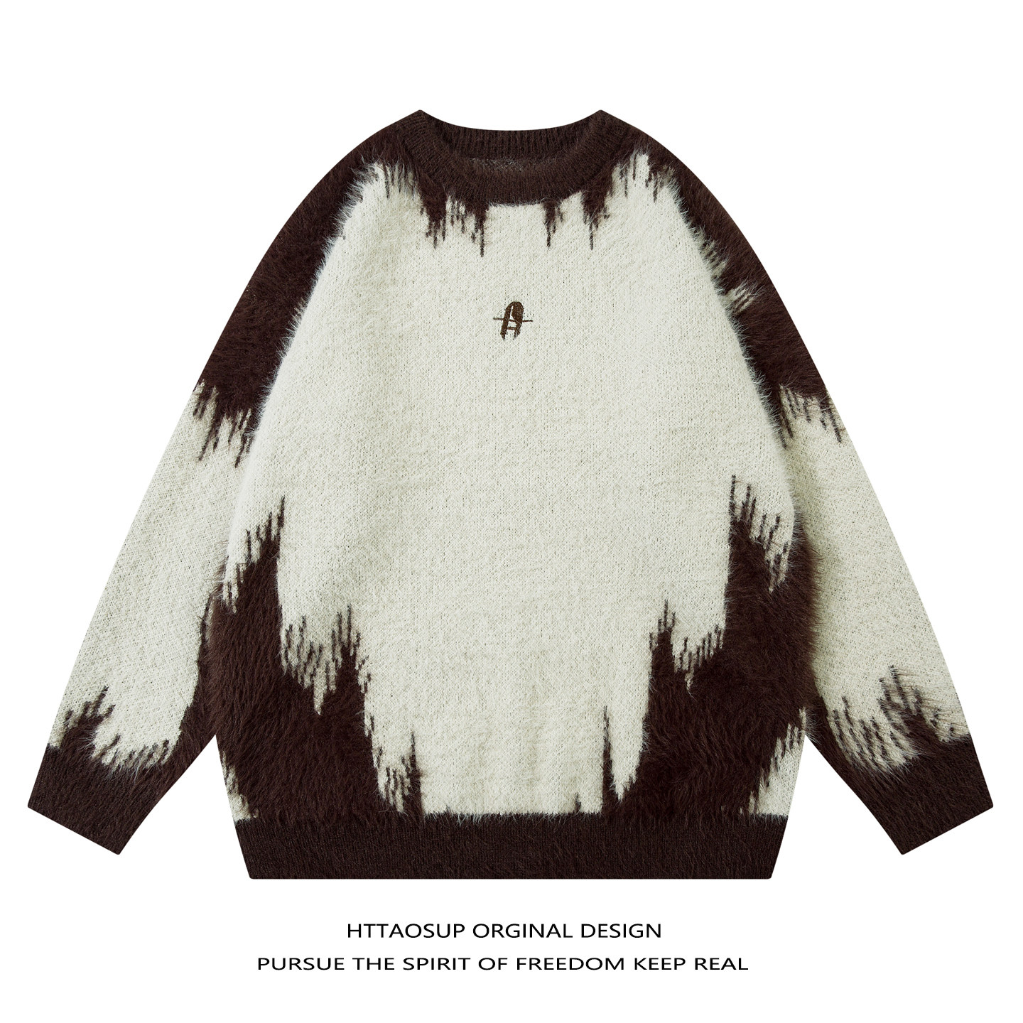 📚 HTTAOSUP美式复古vibe扎染拼色圆领毛衣男女小众宽松街头风针织衫