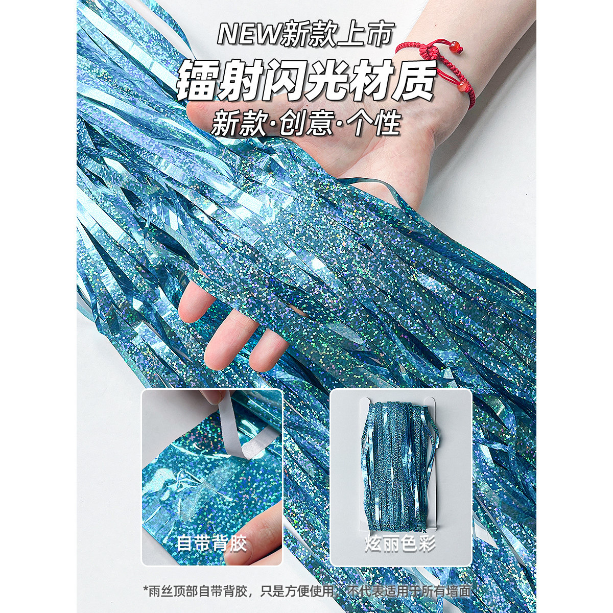 📚 镭射雨丝帘流苏儿童周岁气球派对背景墙彩条拉花生日装饰场景布置