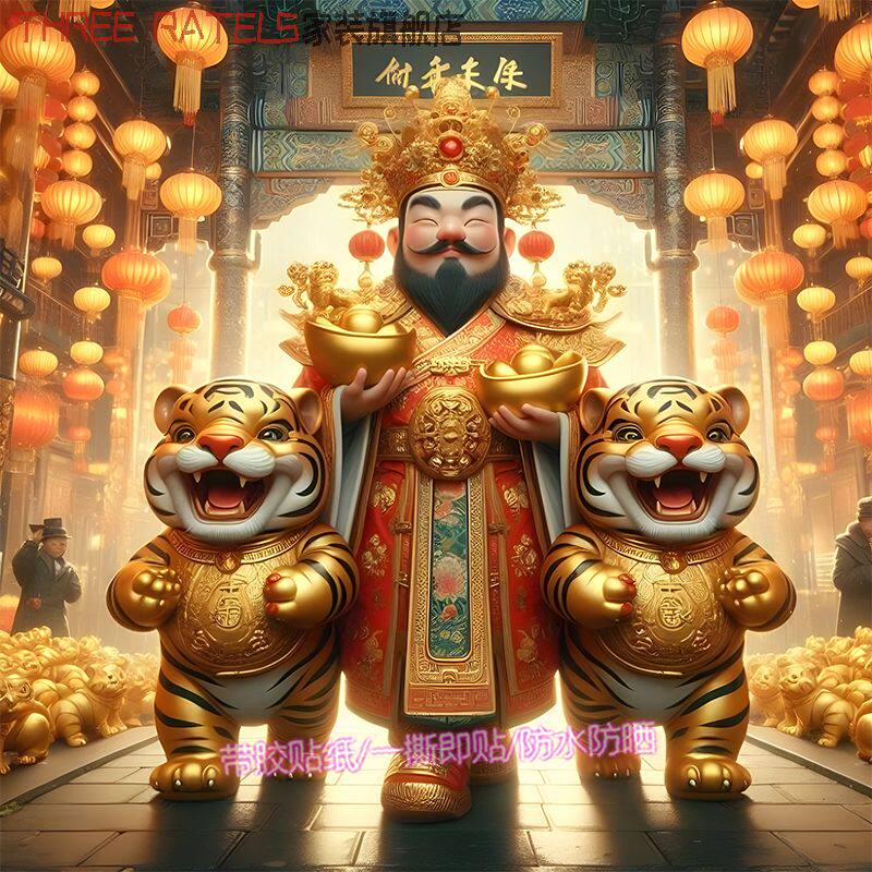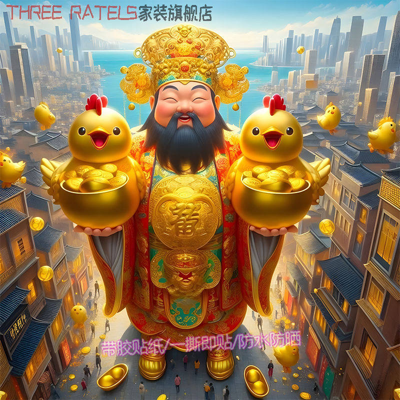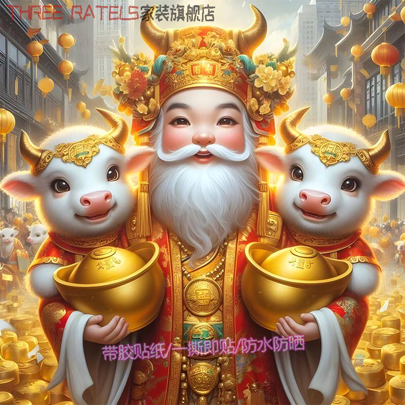 📚 财神马牛鸡猪狗虎生肖送福新年画墙上家居卡通喜庆窗花装饰画贴纸