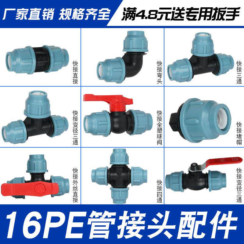 📚 16pe管接头配件水管接头快速活快接开 关直接三通内外丝转接头阀