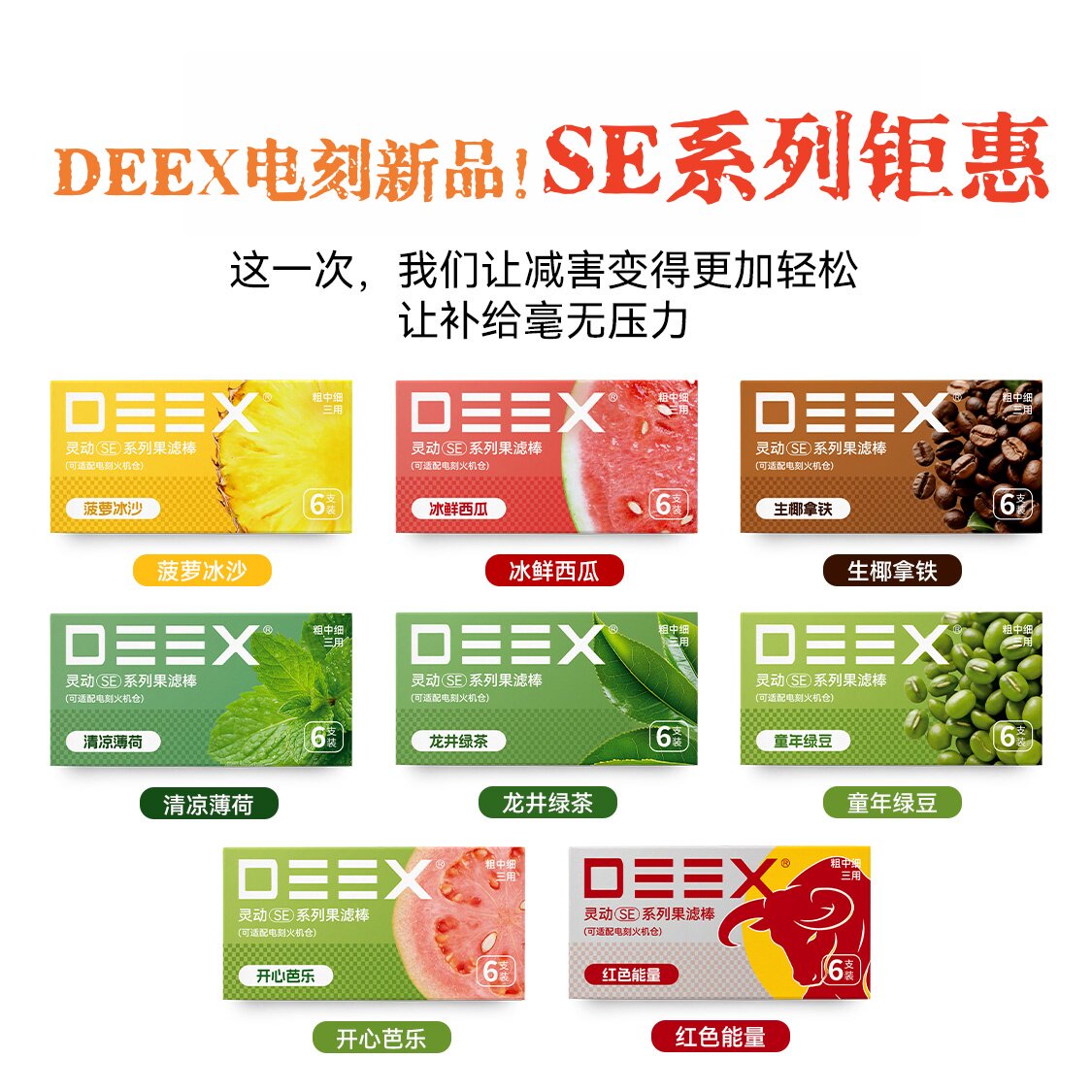 📚 DEEX电刻SE新年新品SE钜惠水果口味祛烟味留清香过滤嘴粗中细通用