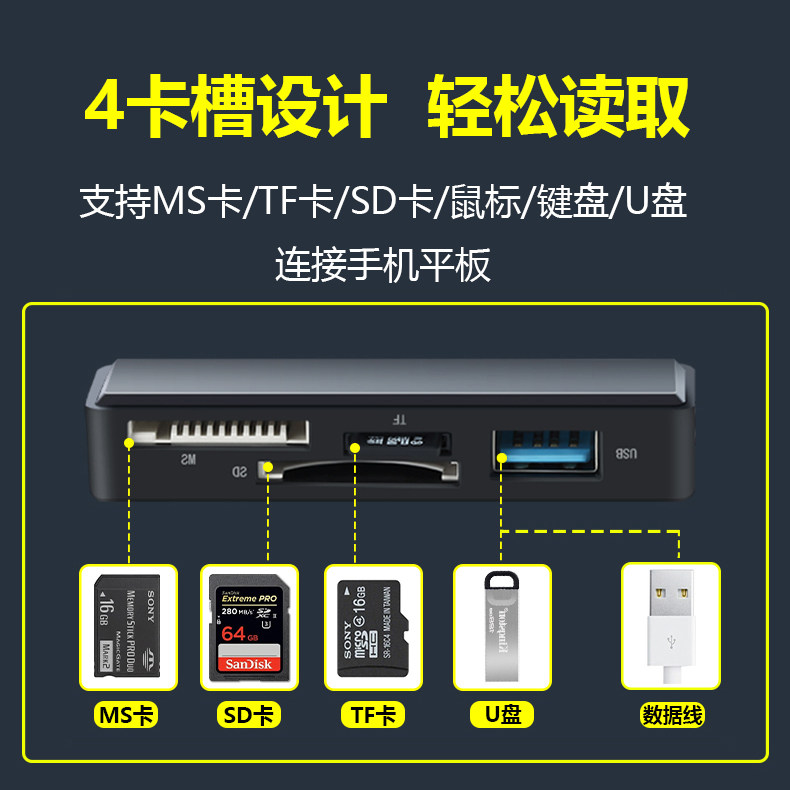 📚 索尼MS卡读卡器多合一高速佳能相机SD存储卡ccd行车记录仪TF内存卡sony记忆棒cf适用苹果华为Type c转手机OTG