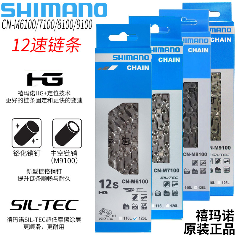 📚 禧玛诺12速链条山地车公路车链条M6100-M7100 XT M8100 XTR M9100