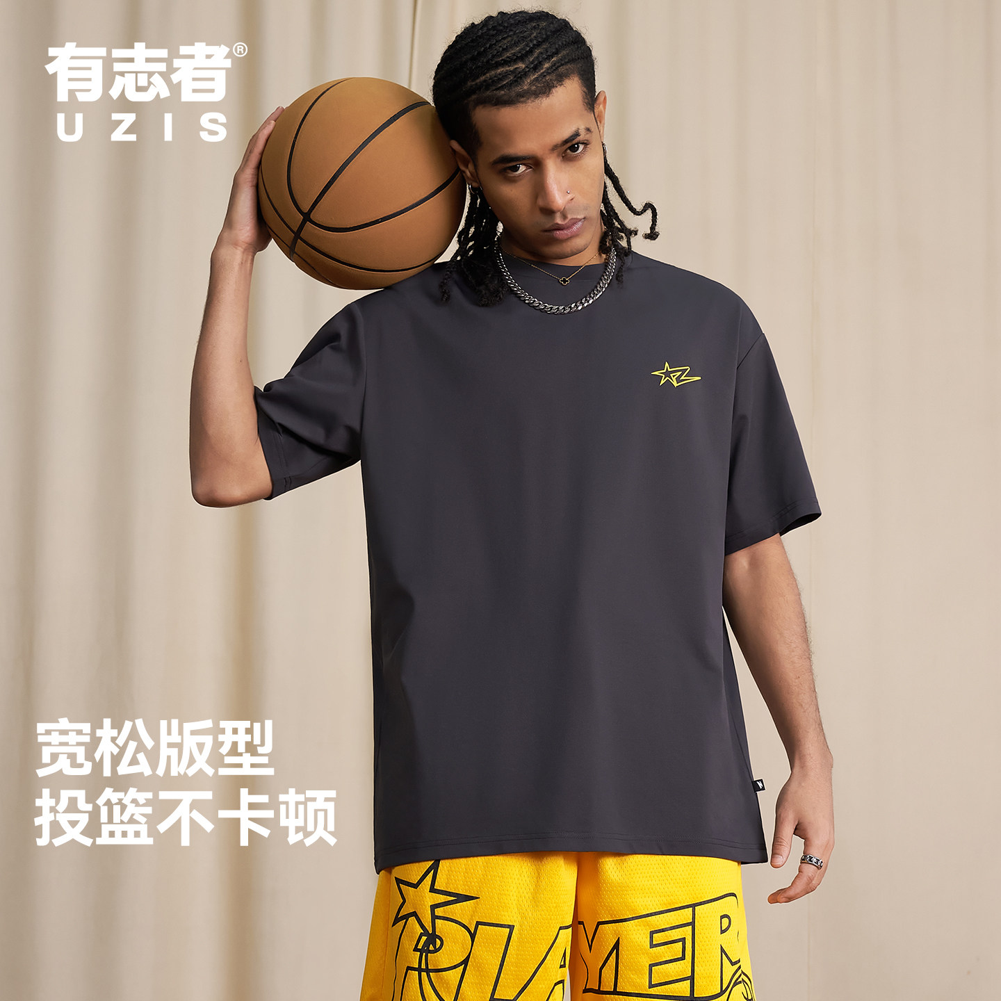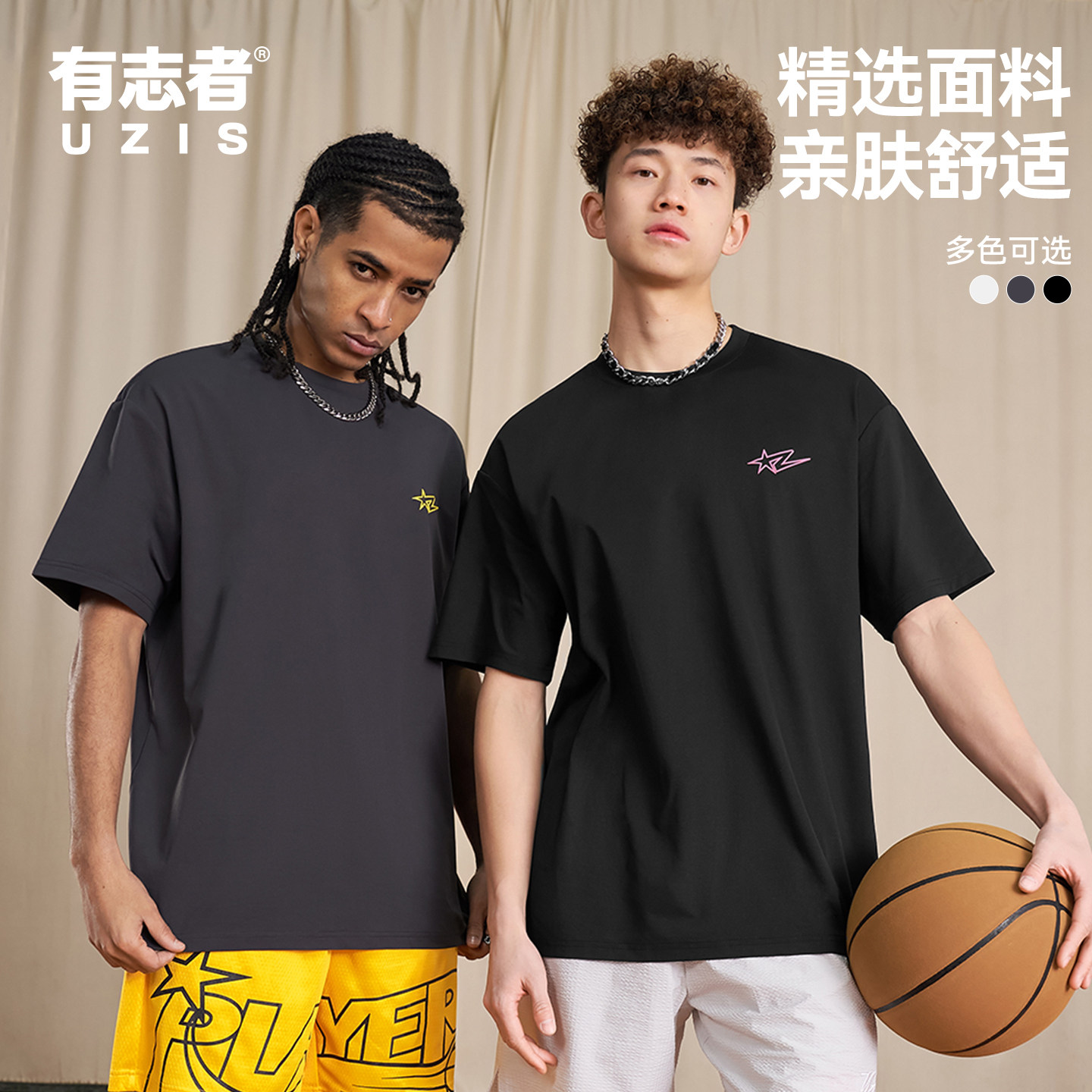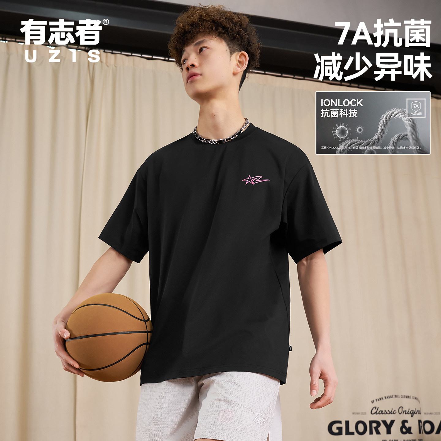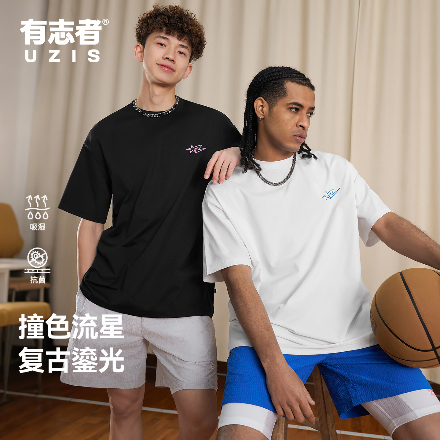 📚 有志者UZIS美式复古潮流短袖纯色吸湿透气T恤男篮球训练跑步星闪