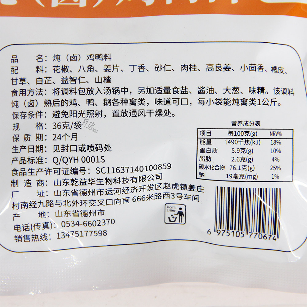 📚 乾益华炖(卤)鸡鸭料36g*2袋炖肉炖鸡炖鸭去腥增香调味料香辛料包