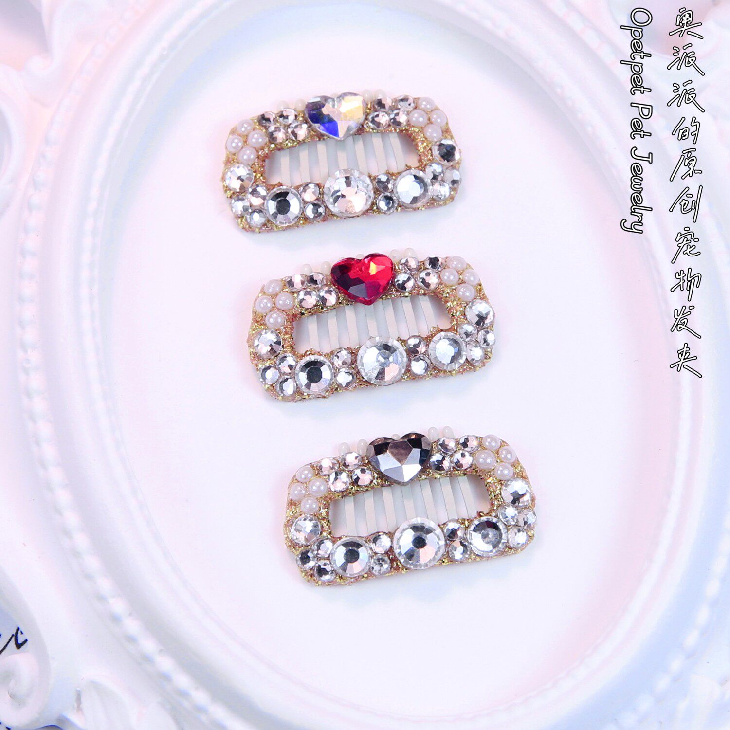 📚 奥派派施华洛世奇钻华子满钻宠物发夹超闪狗狗BB夹马尔济斯约克夏