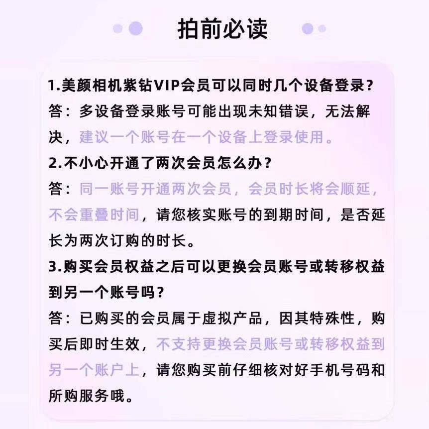 📚 【官网直充】美颜相机紫钻5天月/季/年卡拍照神器美颜相机VIP会员