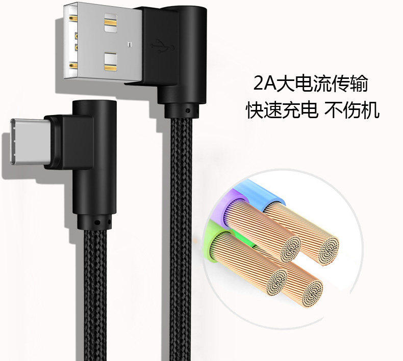 📚 适用于双弯头Type c数据线直角usbc充电线湾头tpyec加长tapyc横头tpc短华为vivo小米oppo红米荣耀手机USB插头
