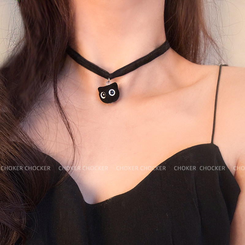 📚 原创新款黑色猫咪choker项圈颈链锁骨链可爱少女短款丝绒chocker