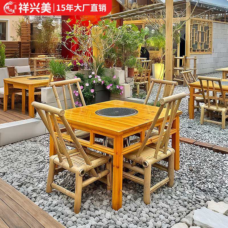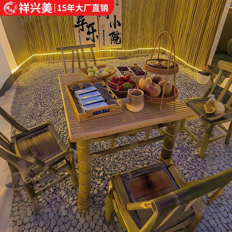 📚 手工竹椅子靠背椅家用餐馆火锅竹桌子编制民宿阳台休闲老式竹凳子
