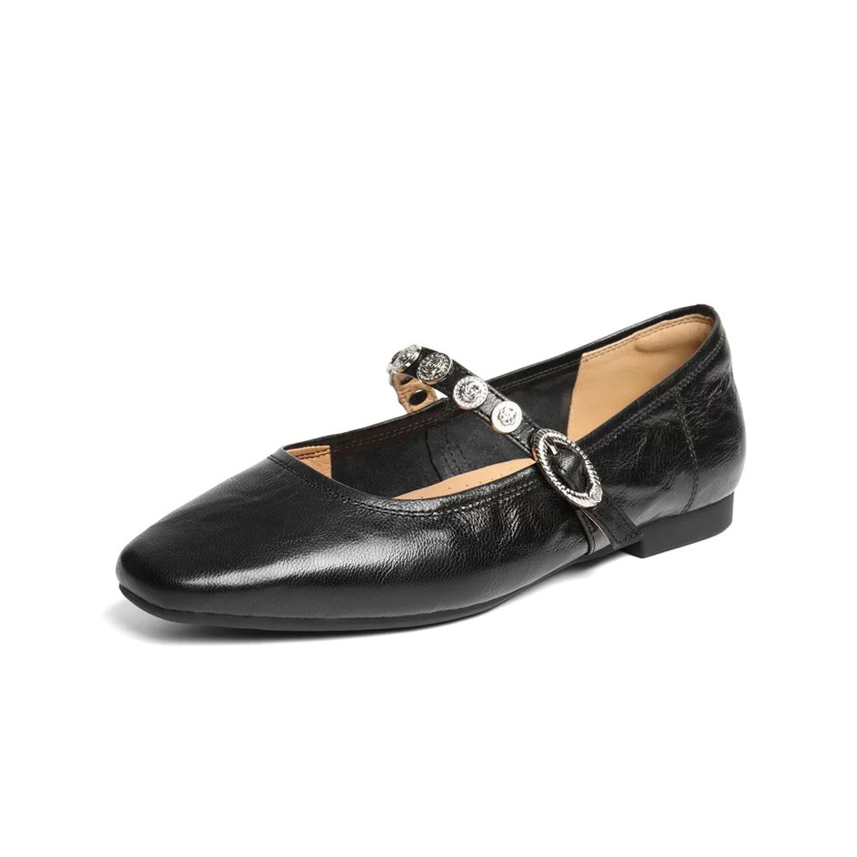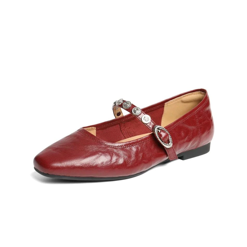 📚 特价BELLE百丽25圆舞曲羊皮红色玛丽珍鞋复古软底浅口女D9V1DCQ5