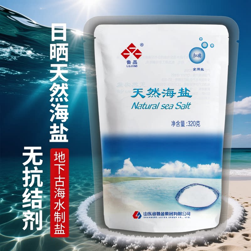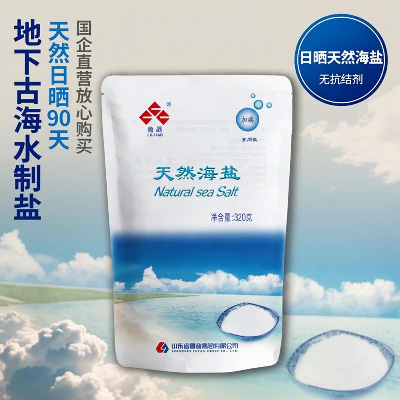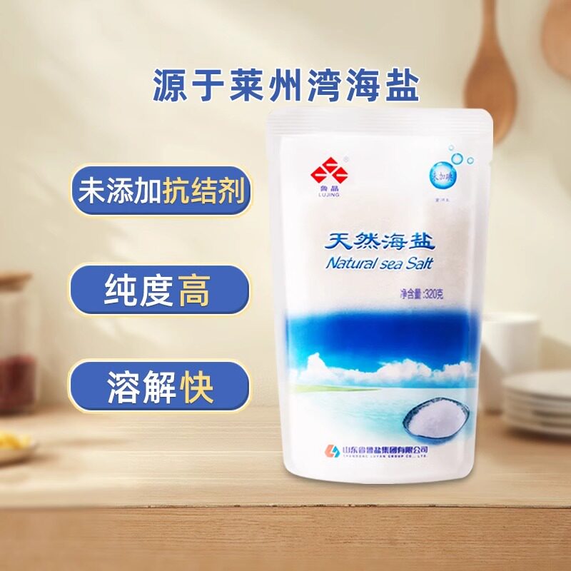 📚 鲁晶天然海盐食用盐320g加碘无碘食盐家庭装家用细盐调料无抗结剂