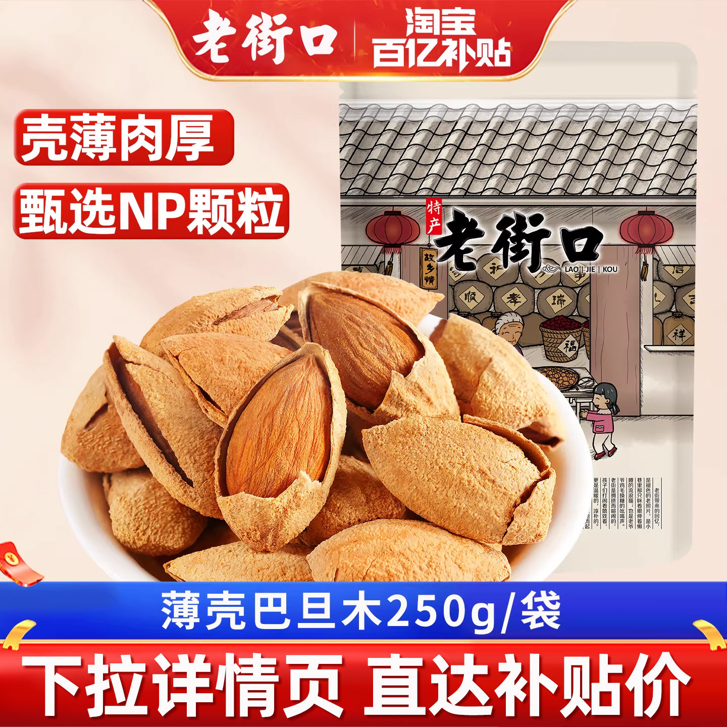 📚 老街口奶香味巴旦木500g干果NP扁桃仁孕妇新货坚果休闲零食年货