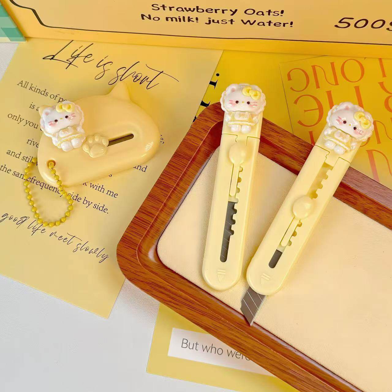 📚 小刀可爱拆封开箱包裹信办公裁纸刀卡通KT猫美工刀迷你便携拆快递