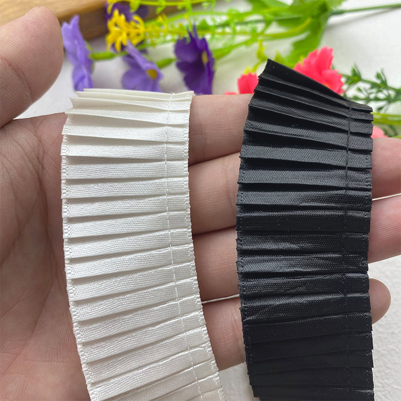 📚 3cm黑白色高品质百褶花边褶皱蕾丝织带diy服装裙边发饰装饰辅料