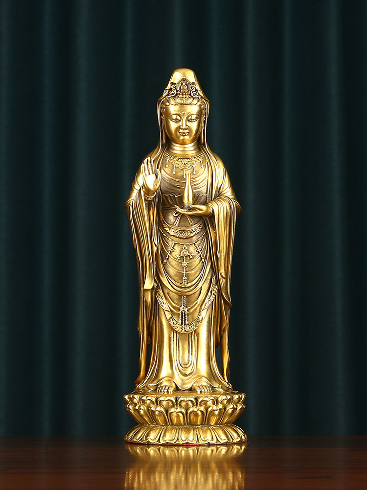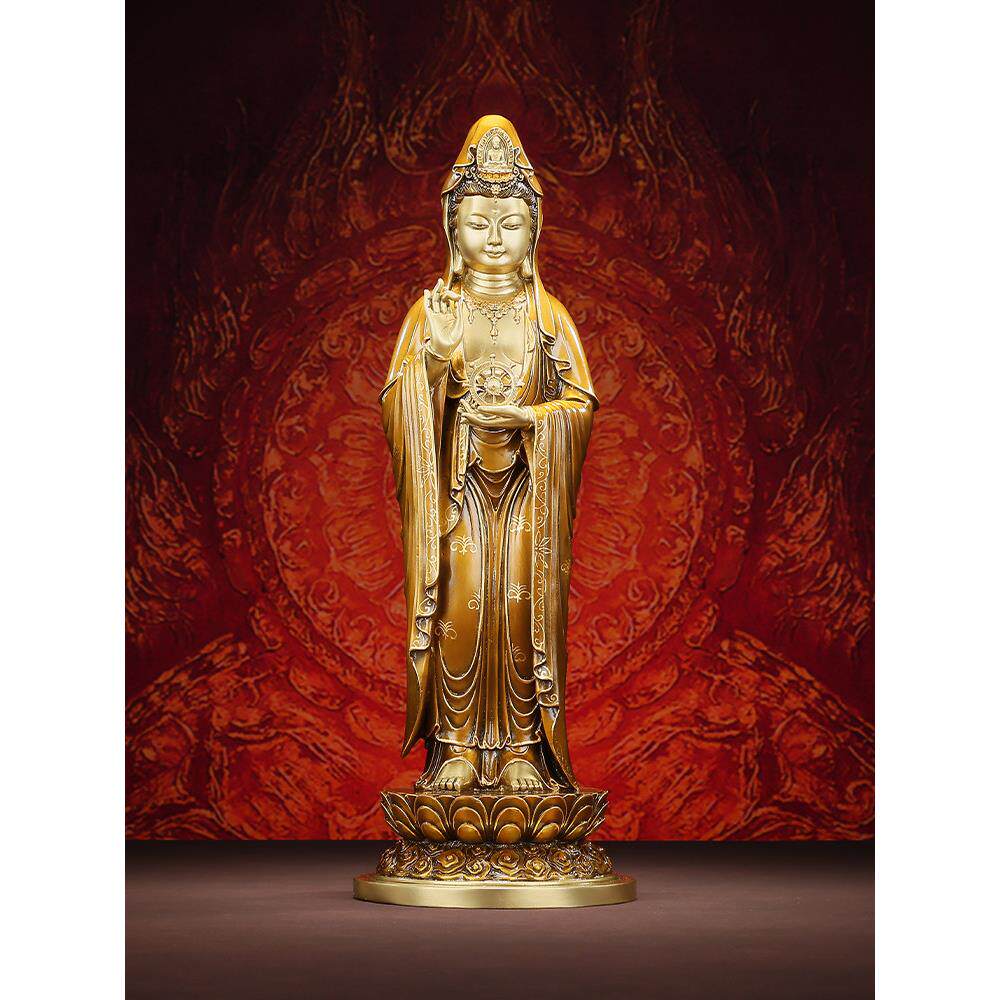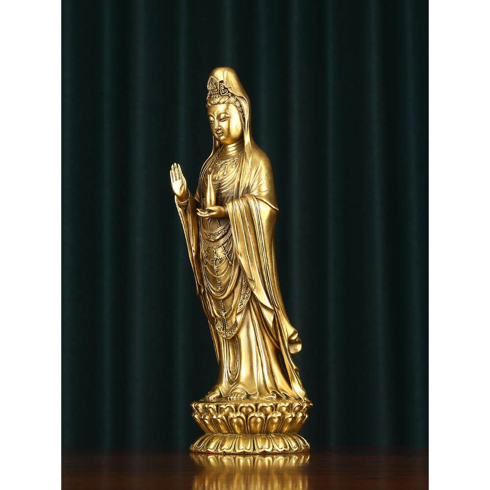 📚 黄铜观音摆件南海菩萨站像铜工艺品家居饰品观世音立像