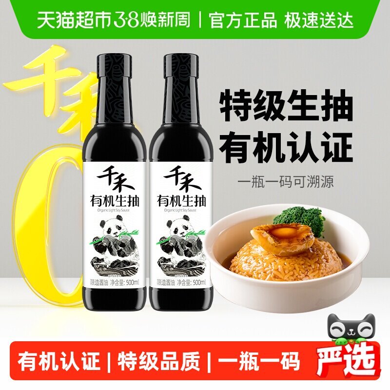 📚 【详情领优惠】千禾酱油有机特级生抽500ml*2瓶炒菜凉拌有机认证