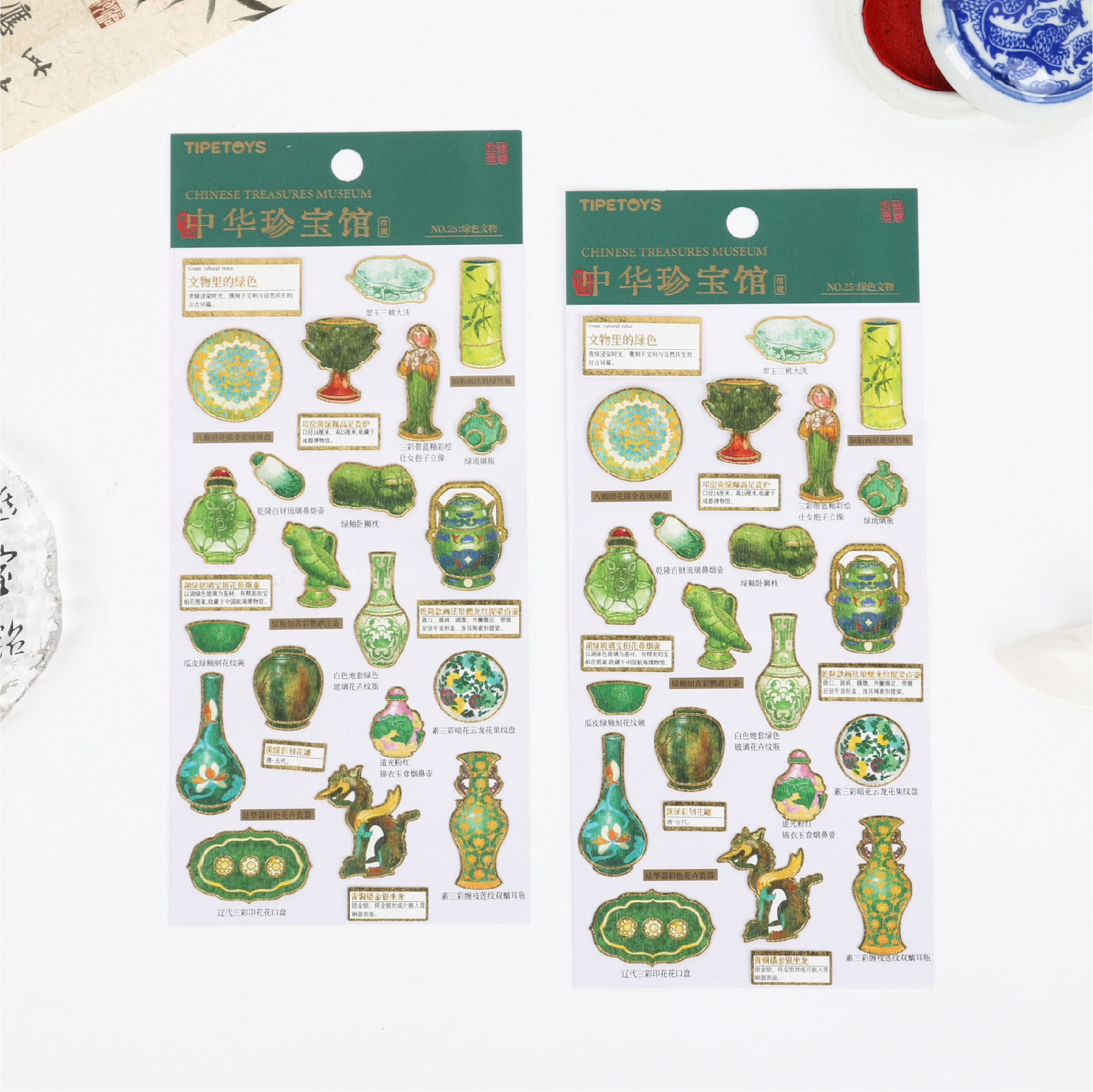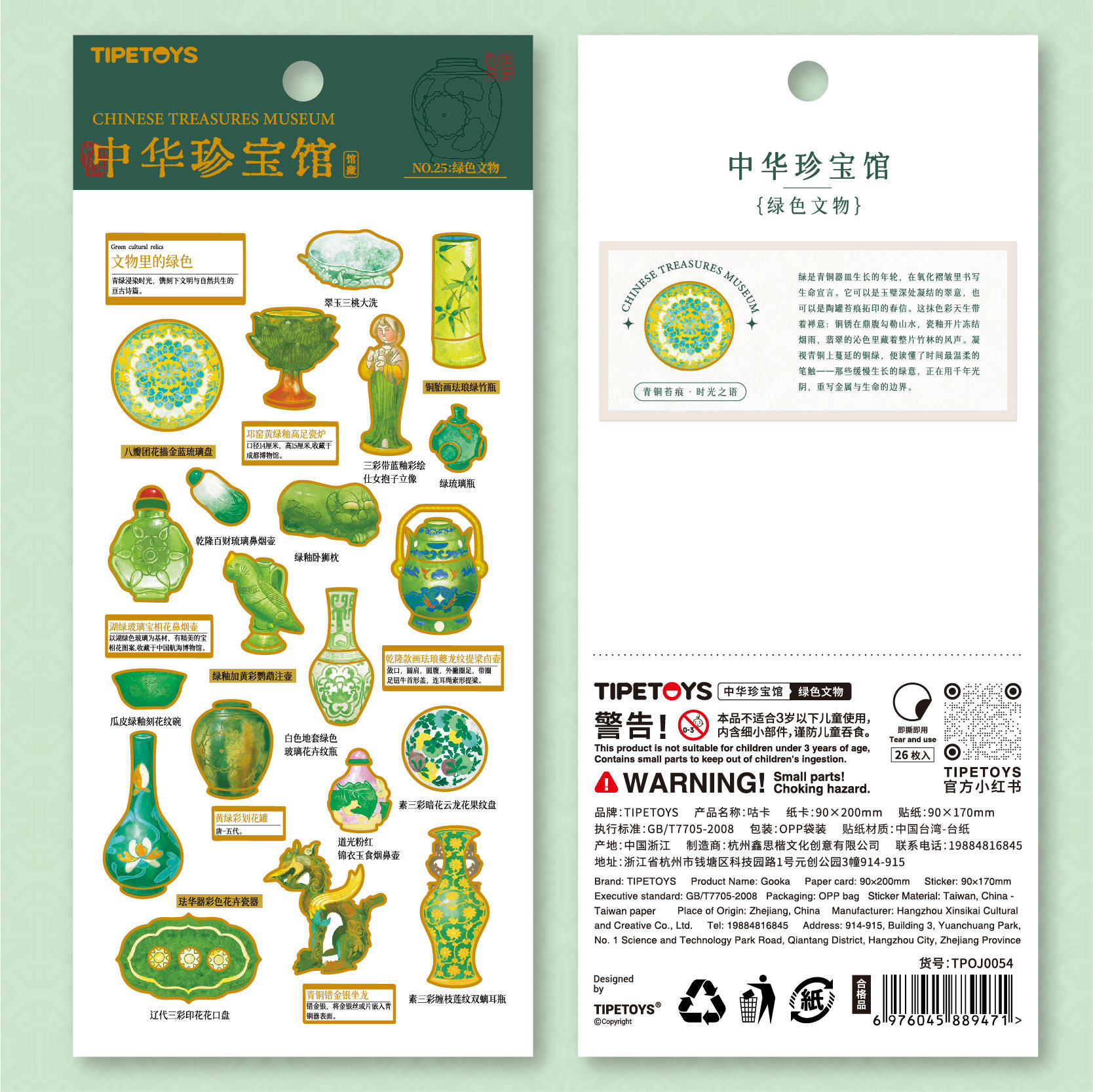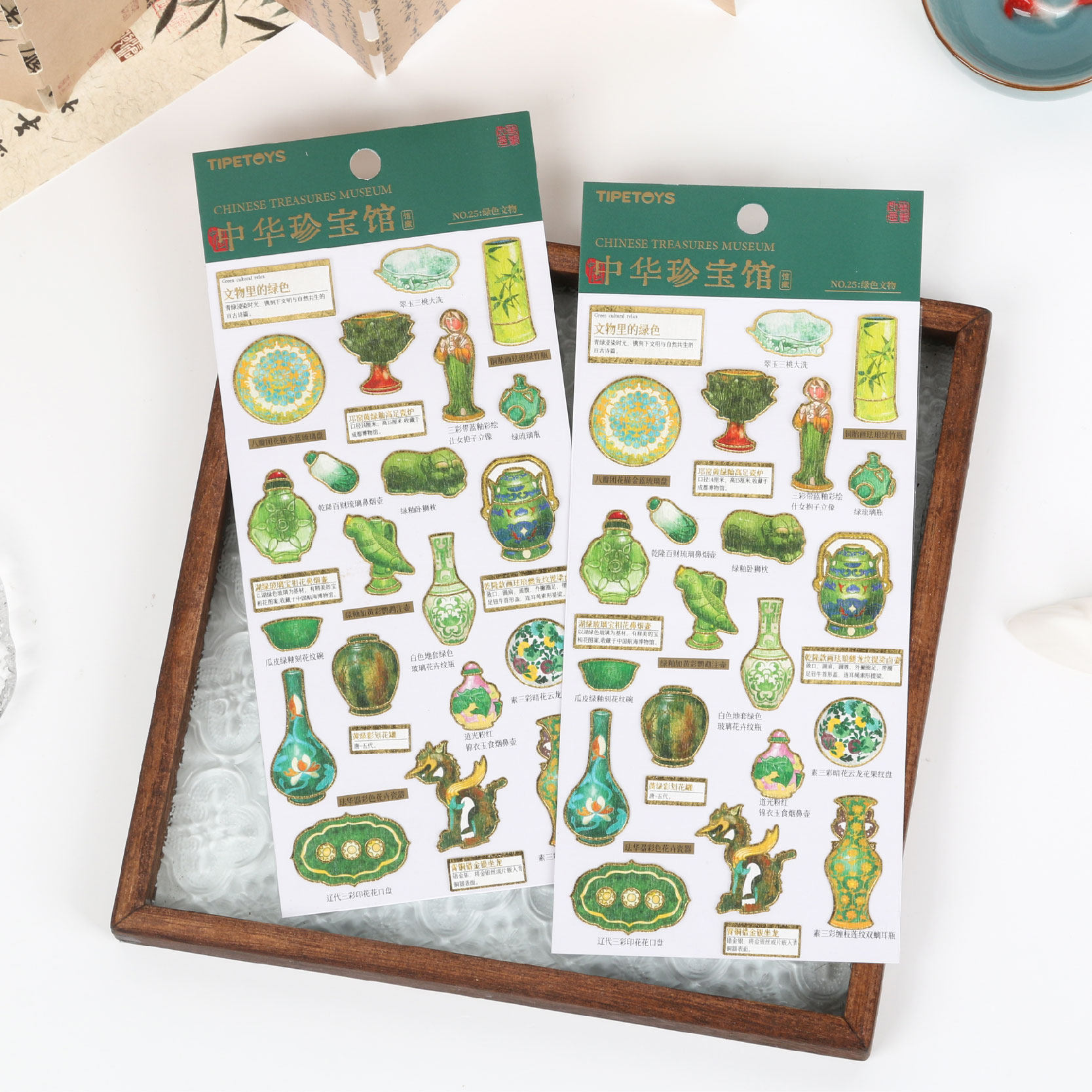 📚 TIPETOYS国风咕卡中华珍宝馆绿色文物贴纸装饰行李箱桌面烫金贴画